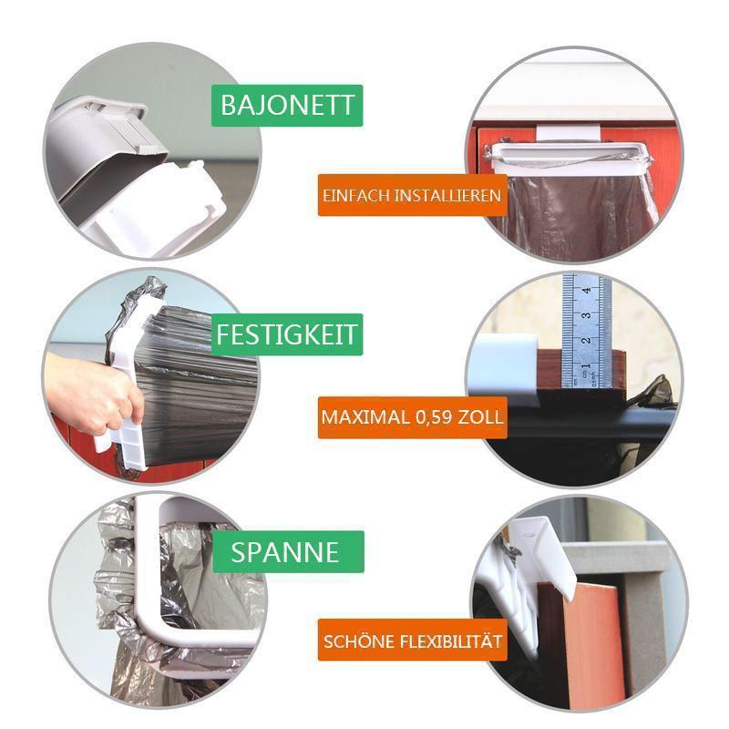 • ACHTUNG - Der Haken des Müllsackhalters ist ursprünglich nach innen gebogen, was ihn vor dem Fallen schützen kann.
