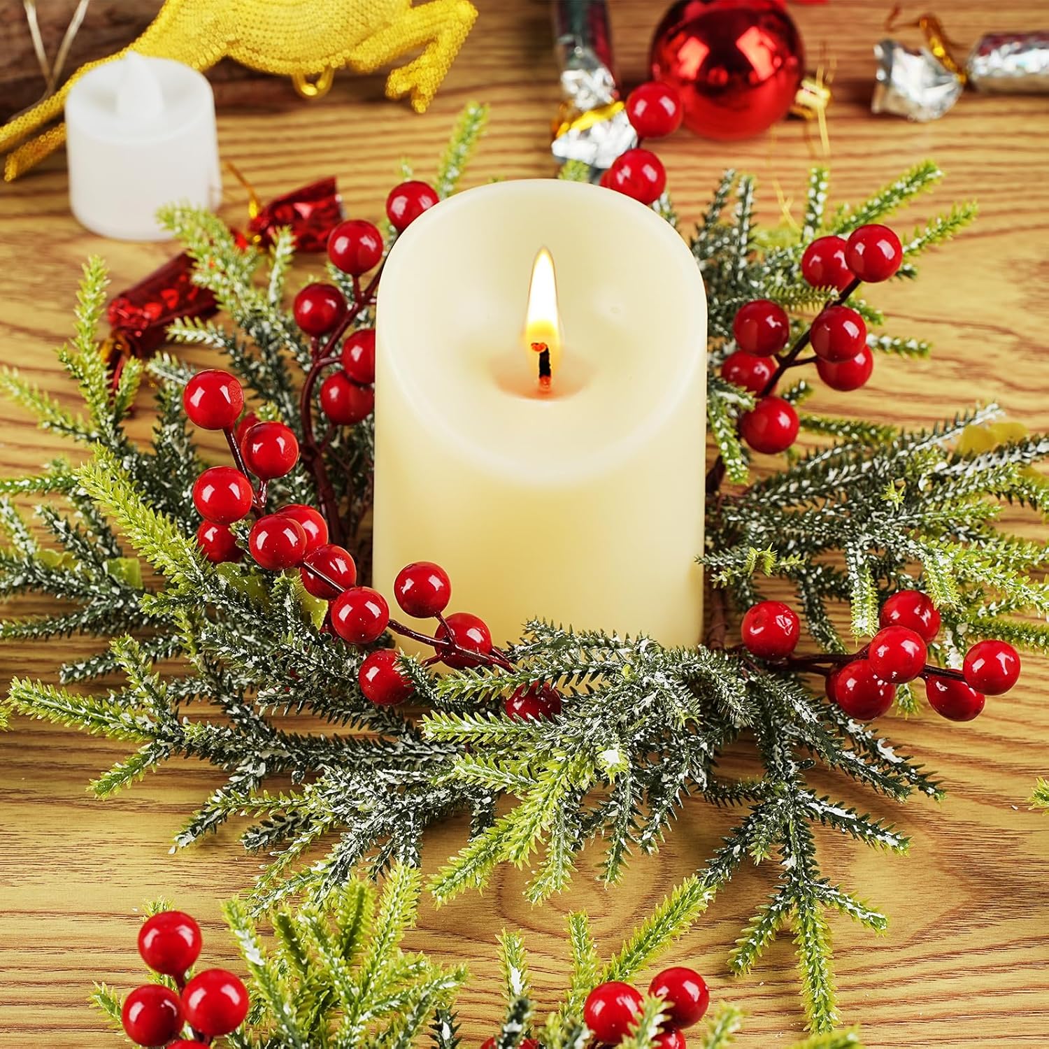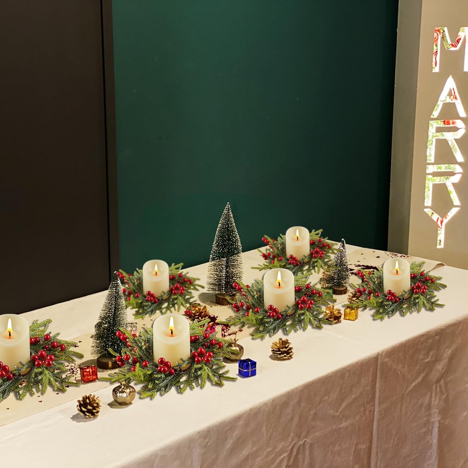 Frendorf | Berried Foliage Kerzenring 11 cm Festliche Grünkranz für Tischdeko, Feiertagsmittelpunkte, Rustikale Weihnachtsakzente, Künstlicher Beeren- und Blätterring für Teelichter und Stumpenkerzen