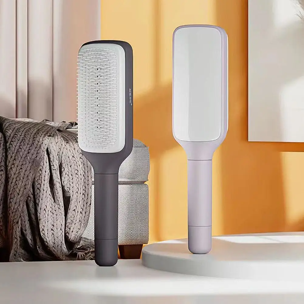 Erleben Sie die Vorteile unseres Massagekamms - die Antwort auf schmerzfreies Entwirren, für eine gesündere Kopfhaut und ein prachtvolles Haarwachstum. Dieser fortschrittliche Kamm gleitet mühelos durch Verfilzungen und Knoten und verleiht Ihrem Haar Geschmeidigkeit und Vitalität. Die Selbstreinigungsfunktion ist ein echtes Verkaufsargument: Einfach den Griff drehen und sich von verfilztem Haar verabschieden!