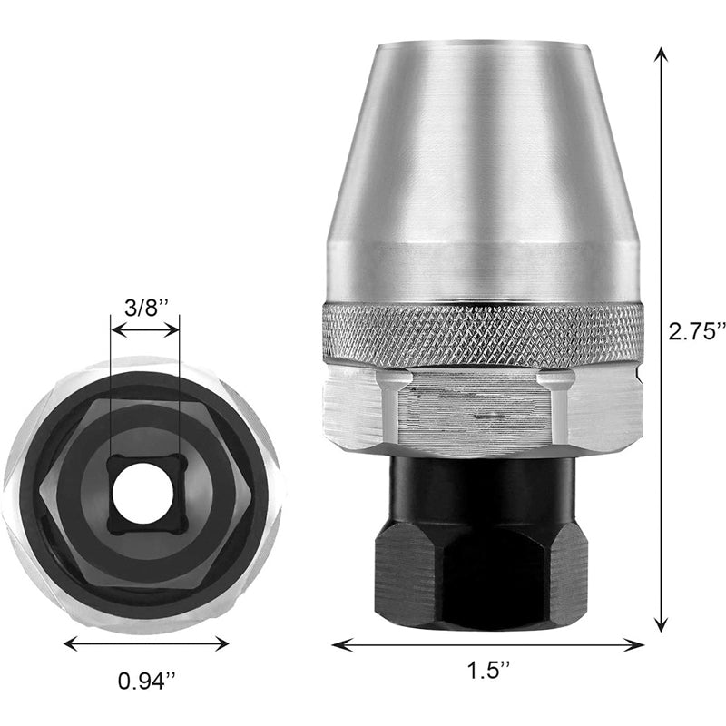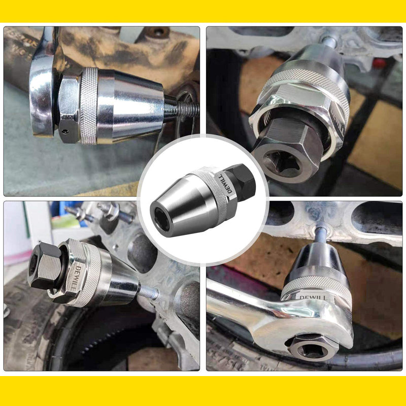 • Es hat einen  3/8-Zoll-Antrieb der mit Handratschen, Schlagschraubern und Druckluftwerkzeugen, und das sechseckige Flach kann zusammen mit Flachschlüsseln, verstellbaren Schlüsseln, Stecknüssen und Zangen verwendet werden.