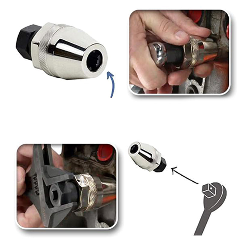 • Dieses Werkzeug zeichnet sich durch ein universelles Design aus, das es Ihnen gestattet, beschädigte Bolzen von 1/4-Zoll bis 1/2-Zoll sicher zu fassenund beseitigt die Unsicherheit bei deren Extraktion.