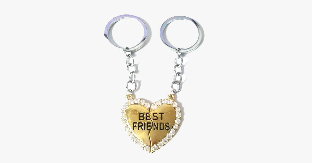 Für all jene, die eine unzertrennliche Verbindung zu ihrem besten Freund haben, ist dieser bezaubernde Best Friends Schlüsselanhänger das perfekte Geschenk. Ein Herz, das in zwei Teile zerbrochen ist, lässt sich wieder vereinen und symbolisiert die starke Bindung zwischen euch. Dieser wunderbare Schlüsselanhänger wird sowohl dich als auch deinen besten Freund mit seinem schönen, mit Edelsteinen verzierten Herzen verzaubern, ganz abgesehen von der zusätzlichen symbolischen Bedeutung!
