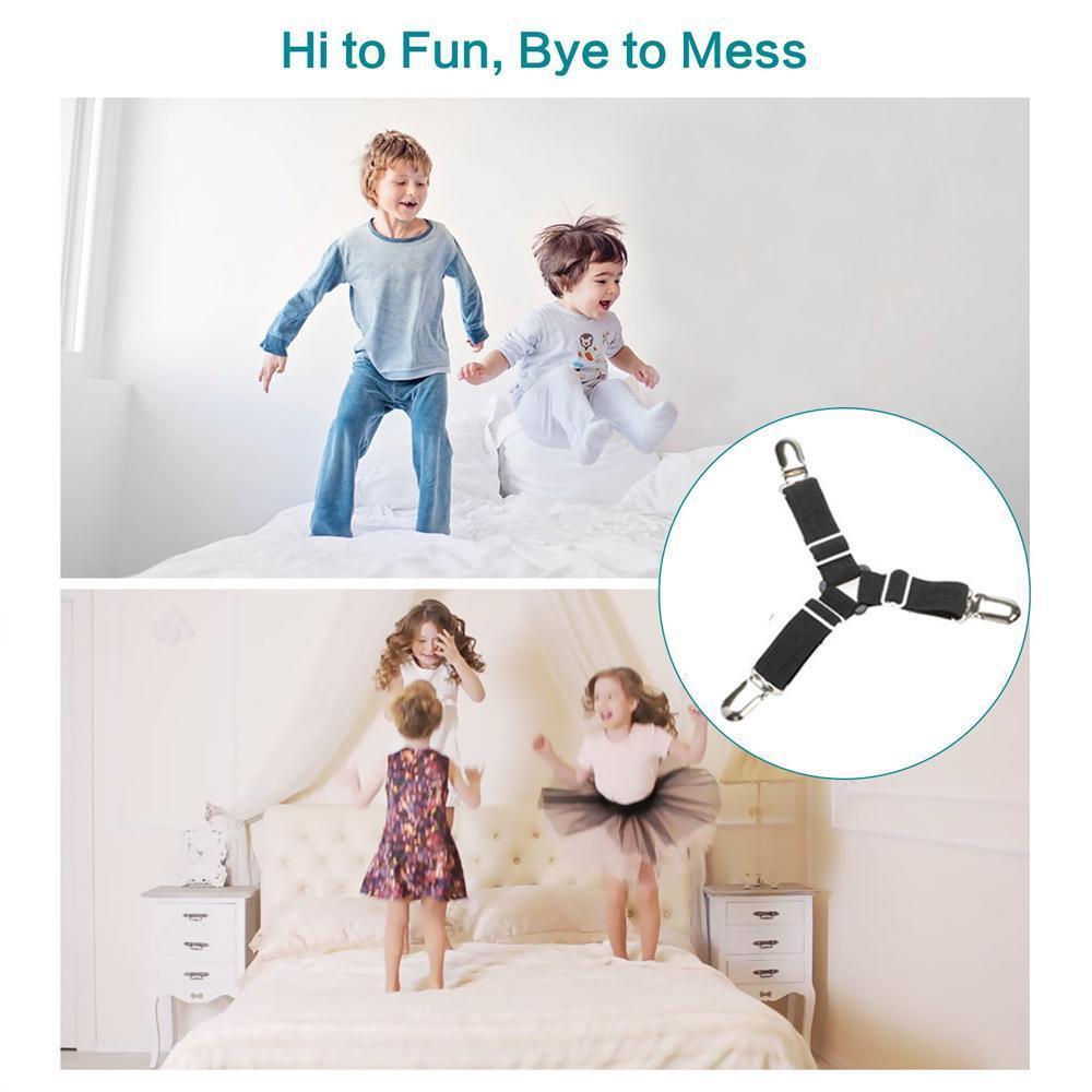• Bettlaken-Halter - bewahren Sie Ihren Frieden und Ihren Rücken: Schluss mit dem ständigen Richten und Anpassen, um Ihre Laken jede Nacht in Ordnung zu bringen! Kein lästiges Bettenmachen jeden Morgen mehr! Diese Halterungen für Bettlaken sorgen dafür, dass Ihre Laken an Ort und Stelle bleiben, ohne dass Sie sie nachjustieren müssen. Beenden Sie den Streit zwischen Ihnen und Ihren Laken und genießen Sie einen ruhigen Schlaf.
