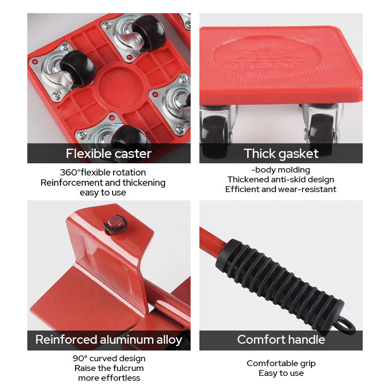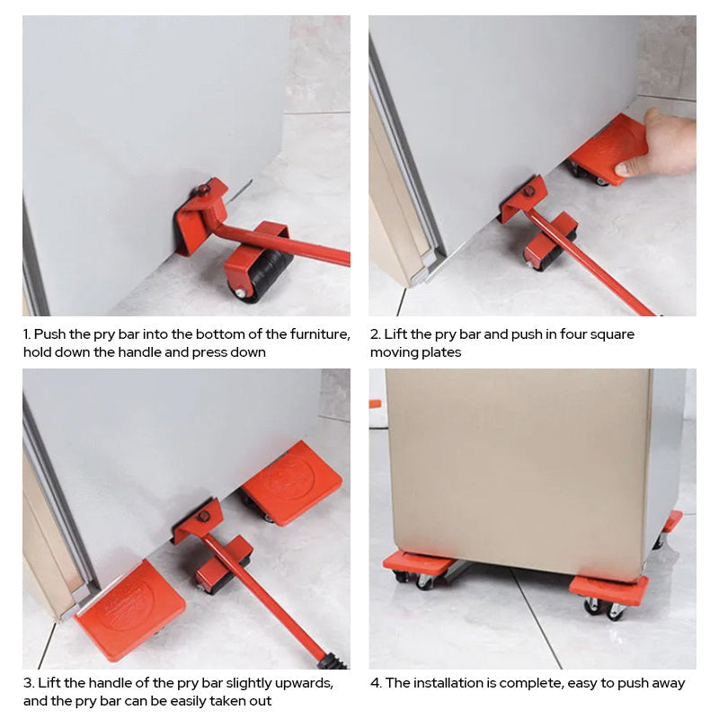 • Anwendung des Möbelhebers: Jeder kann Möbelheber verwenden, unabhängig von der Körperkraft! Nutzen Sie das Werkzeug, um das gewünschte Möbelstück mühelos anzuheben. Danach rollen Sie die Rollen darunter und schieben Ihre Möbel und Geräte ohne Mühe über den Boden.