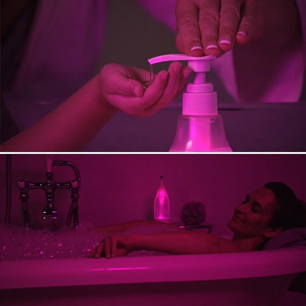 • Mehrzweck: Der Seifenspender kann leicht mit klarem Handwaschmittel, Shampoo, Conditioner oder Händedesinfektionsmittel gefüllt werden, das dann als Lichtdiffusor wirkt und das warme, entspannende Licht im Raum verteilt.