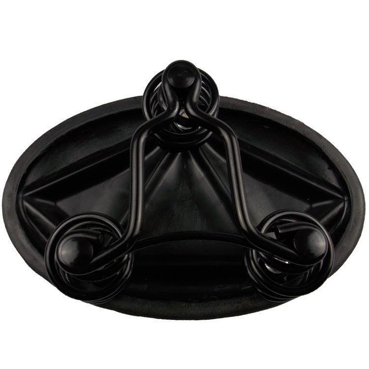 Der Fahrradsattel ist aus Polyurethan gefertigt und hat eine strukturierte Oberfläche. Er verfügt über eine Aussparung in der Mitte. Drei sichtbare Federn sind an der Unterseite des Sattels angebracht. Die Form ist ergonomisch gestaltet und ermöglicht eine stabile Sitzposition. Der Sattel ist für den Einsatz an verschiedenen Fahrradtypen vorgesehen.