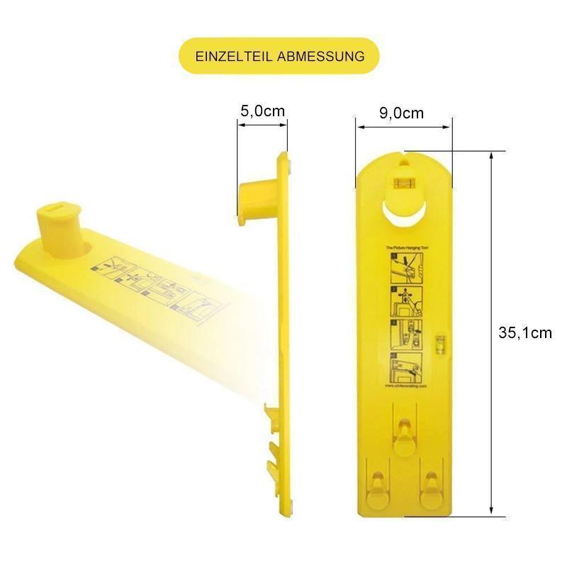 • Das Werkzeug zum Aufhängen von Bilderrahmen verhindert zusätzliche Löcher und Kratzer an Ihren Wänden.