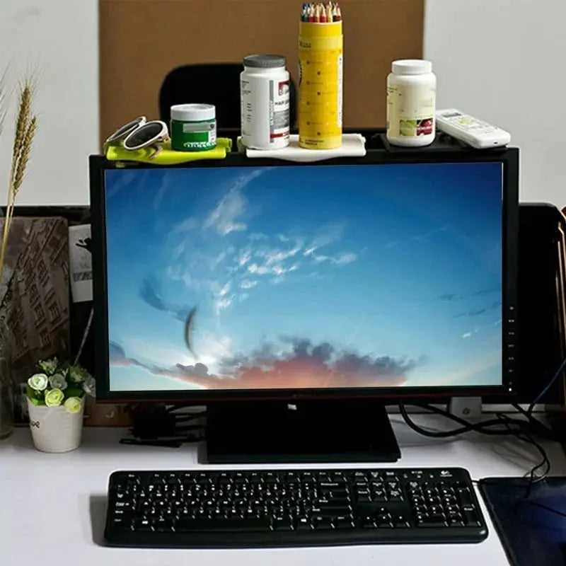 Stellen Sie sich vor, Sie erleben mehr Platz zum Atmen rund um Ihren Bildschirm – ohne Unordnung und Durcheinander. Dieses elegante Regal passt perfekt auf Ihren Monitor oder Fernseher und bietet einen sicheren Platz für Fernbedienungen, Lautsprecher, Router und Ihre Lieblingsaccessoires – ganz ohne Bohren oder Werkzeuge. Mit diesem praktischen Helfer bringen Sie im Handumdrehen Ordnung zurück und können sich besser konzentrieren.