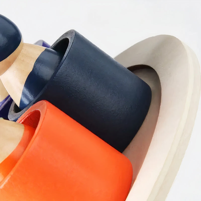 • Lieferumfang: 8 bunte Holzformen mit passenden Ringen
