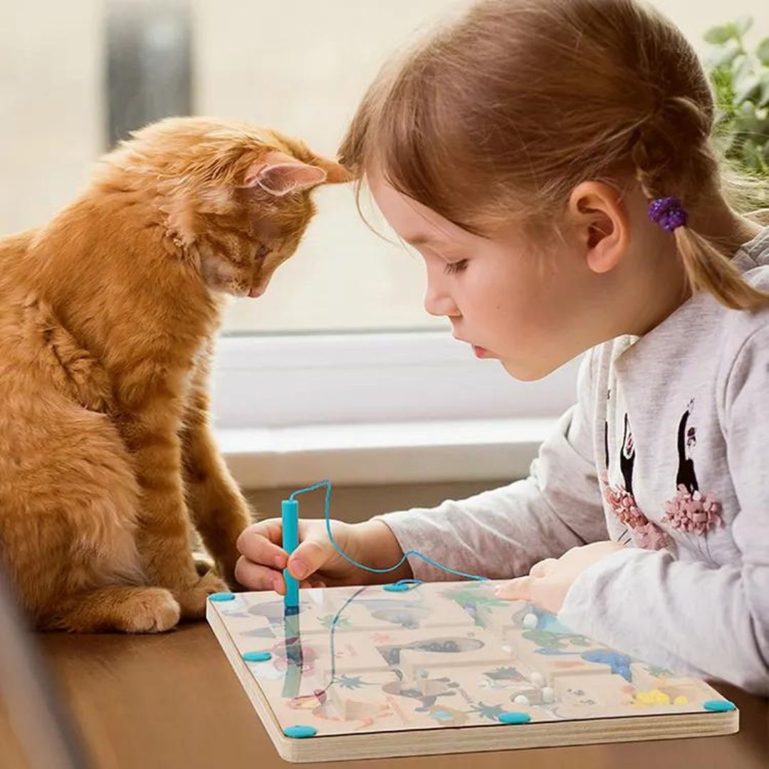 Lassen Sie Ihr Kind die spannende Welt der Dinosaurier entdecken mit diesem magnetischen Dinosaurierlabyrinth! Dieses pädagogische Spielzeug ermutigt Kinder, Farben und Zahlen zu erkennen, während sie gleichzeitig eine Menge Spaß haben. Das interaktive Design ermöglicht es den Kleinen, die Dinosaurierfiguren mit einem Magnetstift durch das Labyrinth zu bewegen. Dieses Spiel bietet eine großartige Möglichkeit, Lernen und Spielen zu verbinden, und hilft dabei, die Feinmotorik sowie die Hand-Augen-Koordination zu fördern.