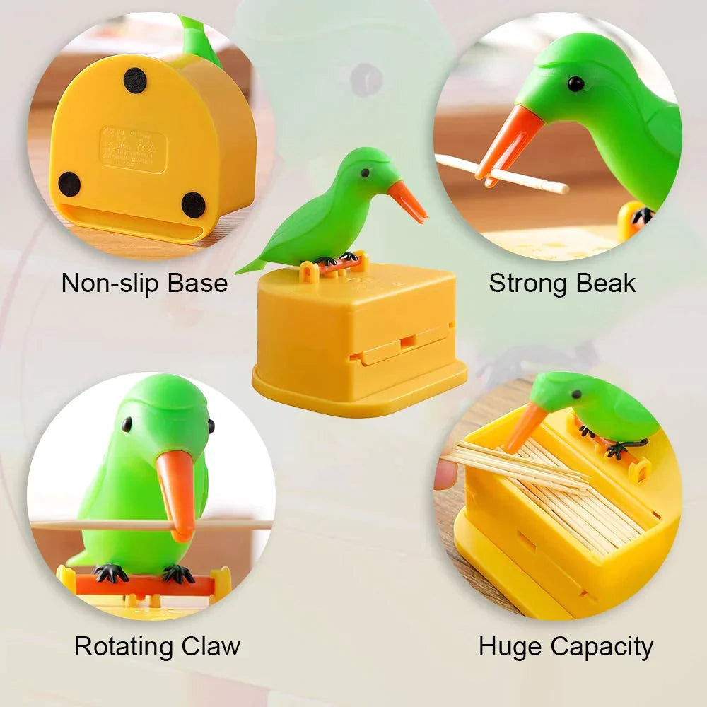 Einfache Anwendung - Der Zahnstocher lässt sich mühelos aus dem Spender herausnehmen. Drücken Sie einfach den Kopf des Vogels, und er nimmt den Zahnstocher automatisch auf und gibt ihn bereit. Der abnehmbare Deckel erleichtert zudem die Reinigung und das Nachfüllen.