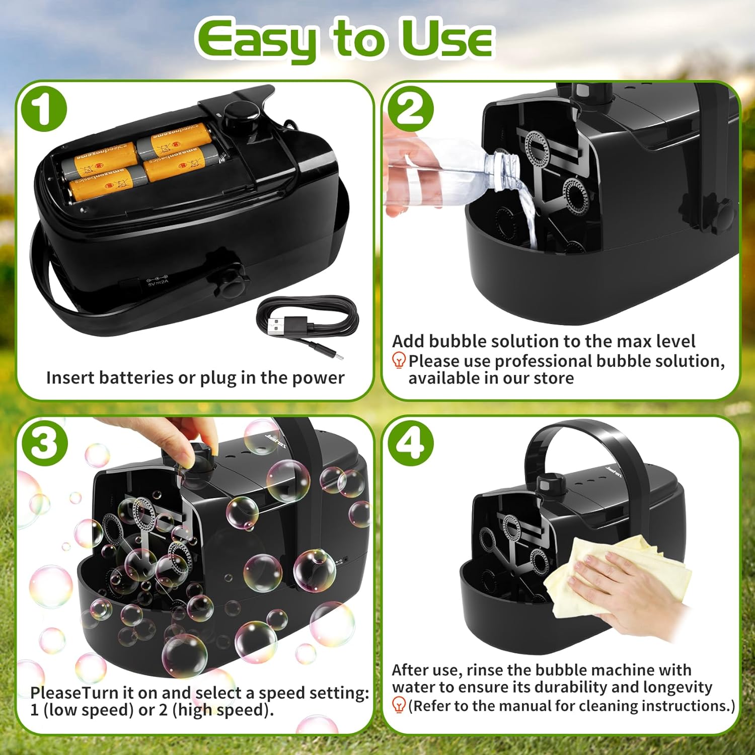 • HOHE SEIFENBLASEN-AUSGABE: Erzeugt über 18.000 bunte Seifenblasen pro Minute mithilfe von 6 rotierenden Ruten und einem starken eingebauten Motor.