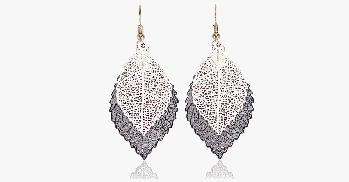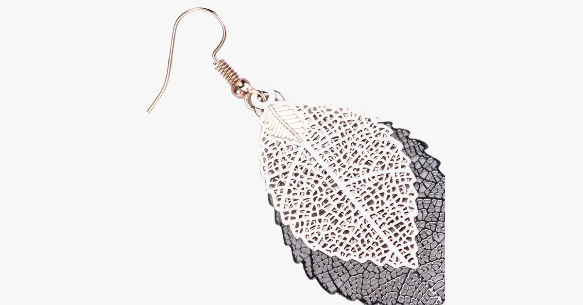Diese klassischen, vintage-inspirierten Blatt-Ohrhänger setzen selbst zu schlichten Outfits ein beeindruckendes Zeichen. Die doppelten Blatt-Ohrhänger im Boho-Stil verleihen Ihrem Look eine trendige Note. Sie sind in zwei eleganten Farbtönen erhältlich – Schwarz und Silber.