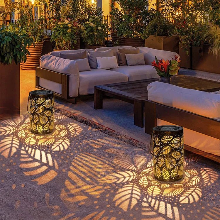 Genießen Sie die Ruhe in einem goldenen tropischen Rückzugsort mit der strahlenden Blattlaterne. Im Dunkeln können die filigranen Blätter, die in harmonischer Symmetrie angeordnet sind, betrachtet werden. Fügen Sie eine Prise Schönheit, Funktionalität und ein wenig Zauber in Ihren Garten oder auf Ihren Tisch hinzu.