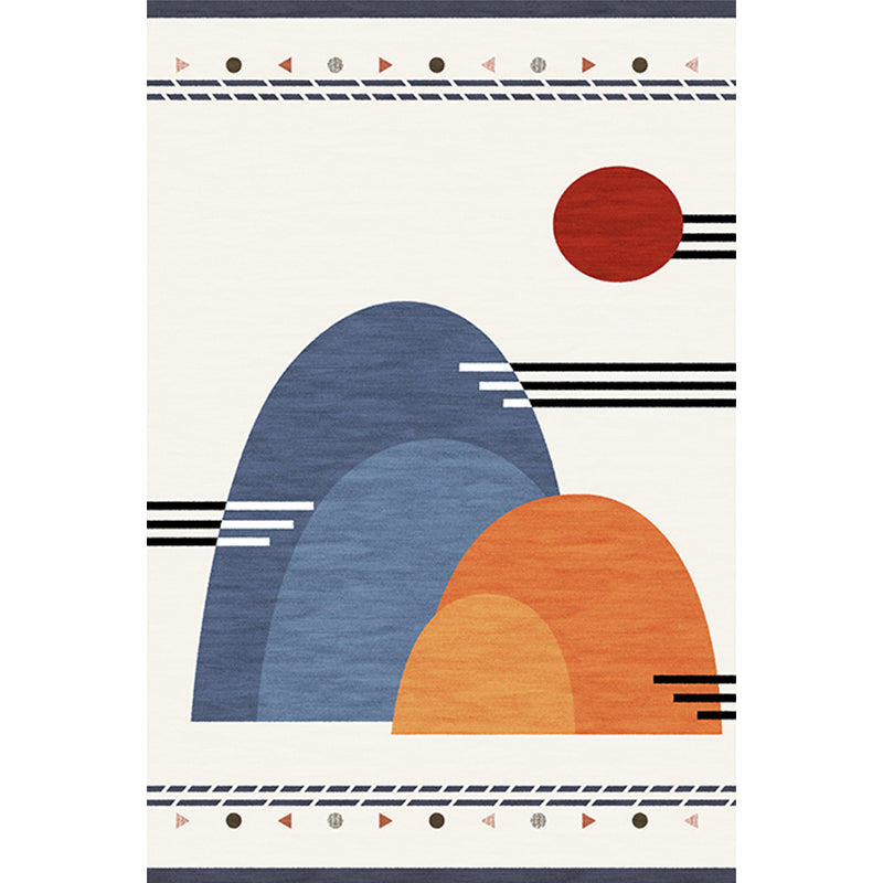 Frendorf | Blaues Bergmuster Teppich Polyester Orientalischer Teppich Waschbar Rutschfest Haustierfreundlicher Teppich für Wohnzimmer