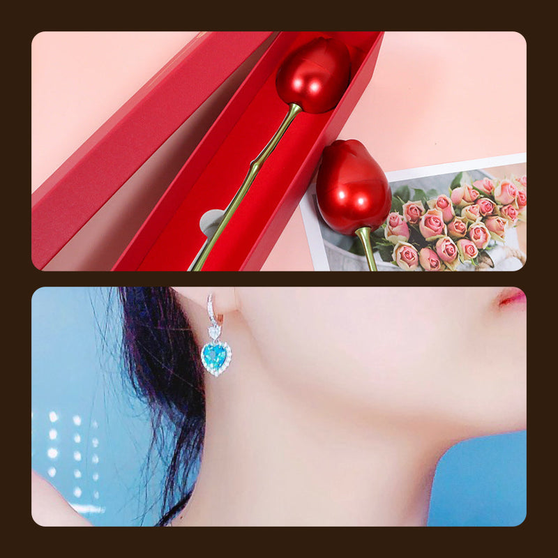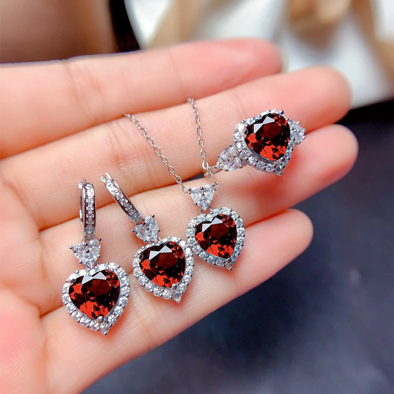 Frendorf | Blaue und rote Zirkonring-Halskette und Ohrringe Geschenkbox