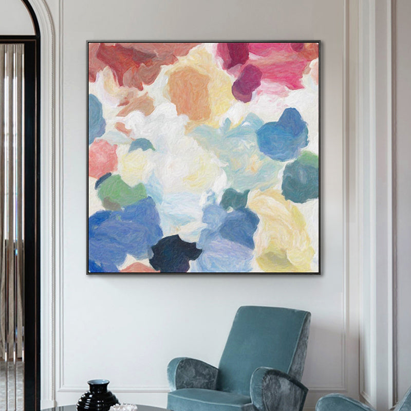 Frendorf | Blaues Handdruckgemälde Texturiertes Abstrakte Expressionismus Esszimmer Leinwand Wanddekoration