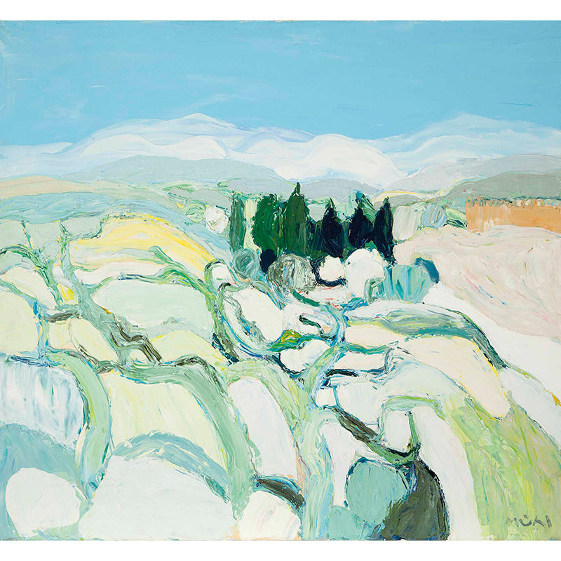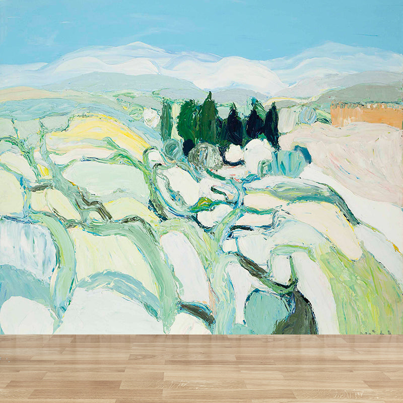 Frendorf | Blau Rollende Hügel Wandtattoo Fleckenresistent Zeitgenössische Kunst Badezimmer Wandverkleidung