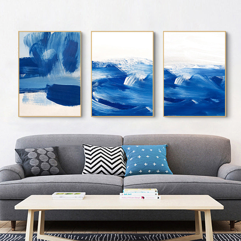 Frendorf | Blaue zeitgenössische Malerei Pinselstrich Wandkunst Dekor für die Küche, mehrere Größen