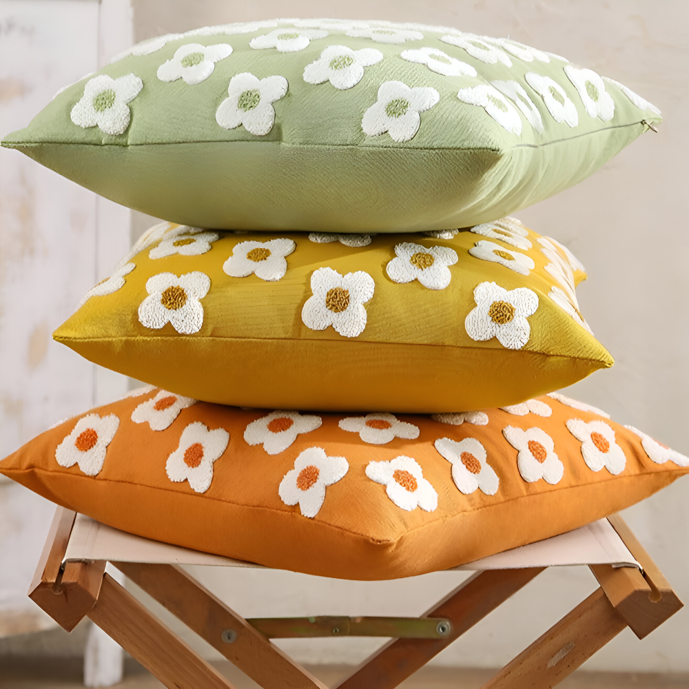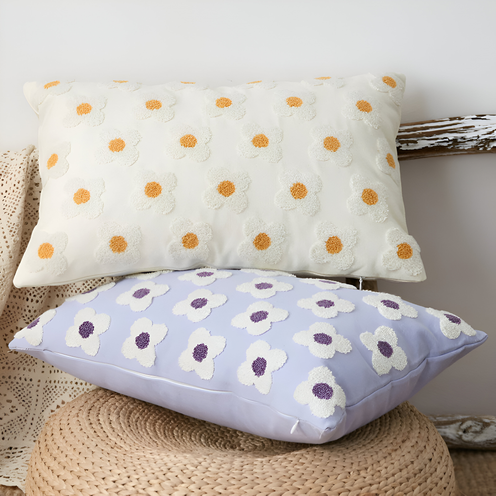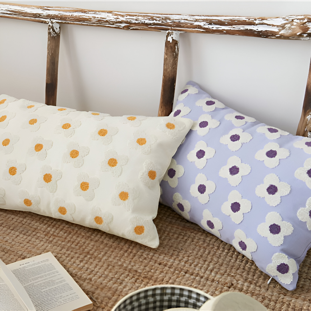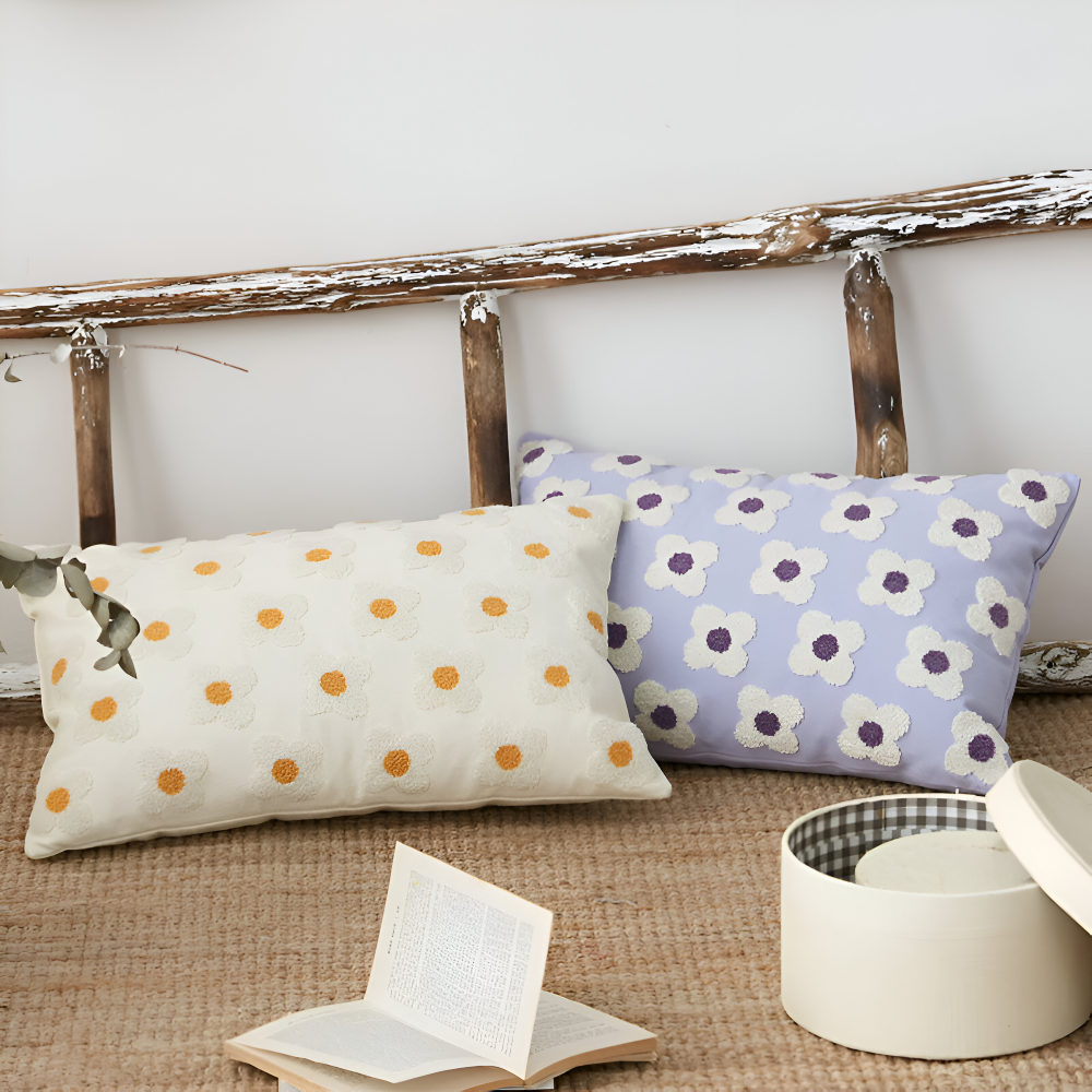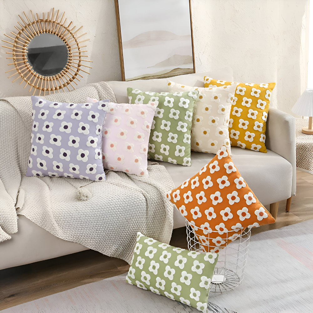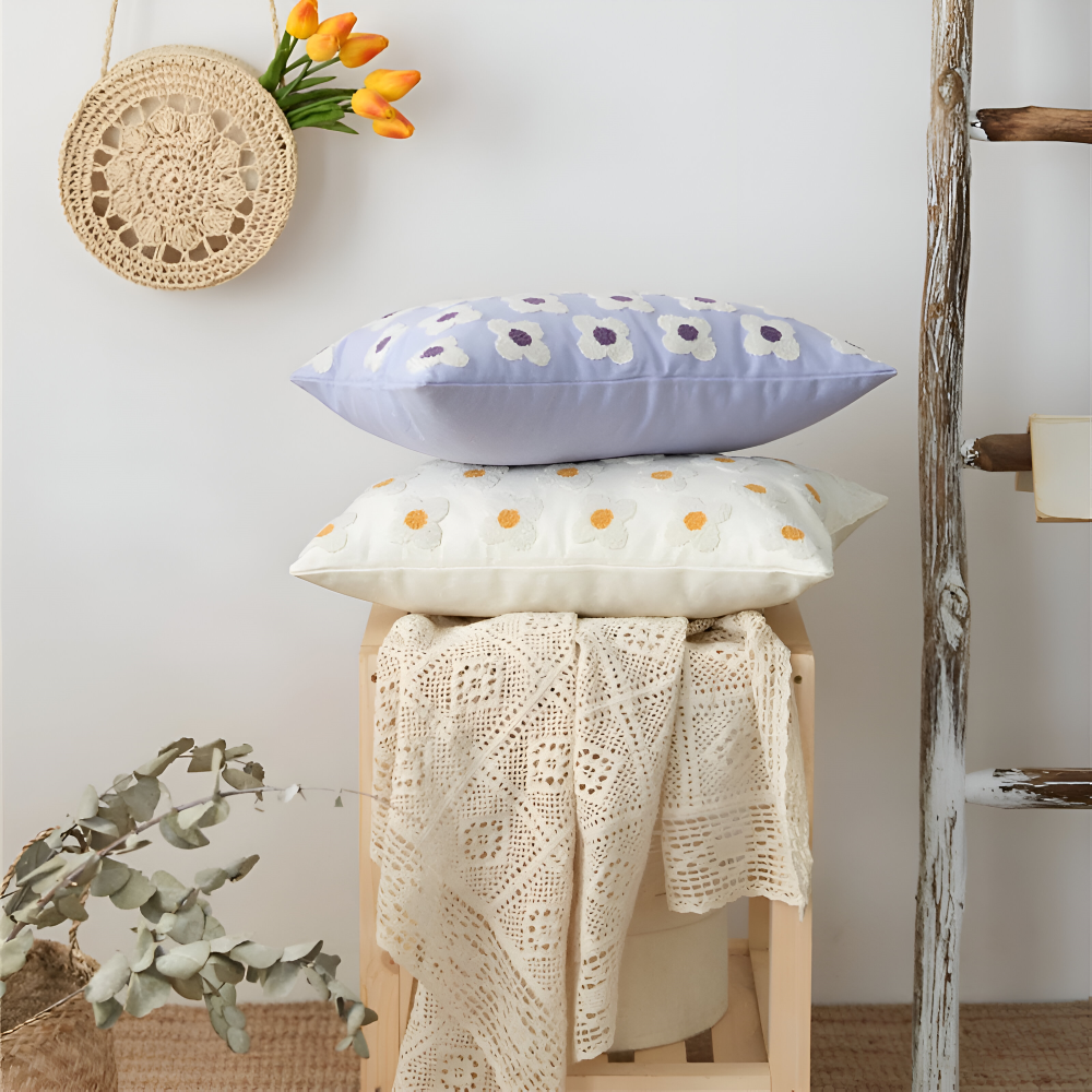 Frendorf | Blooma Sofakissen - Bestickte Quadratische & Rechteckige Blumenkissenhüllen