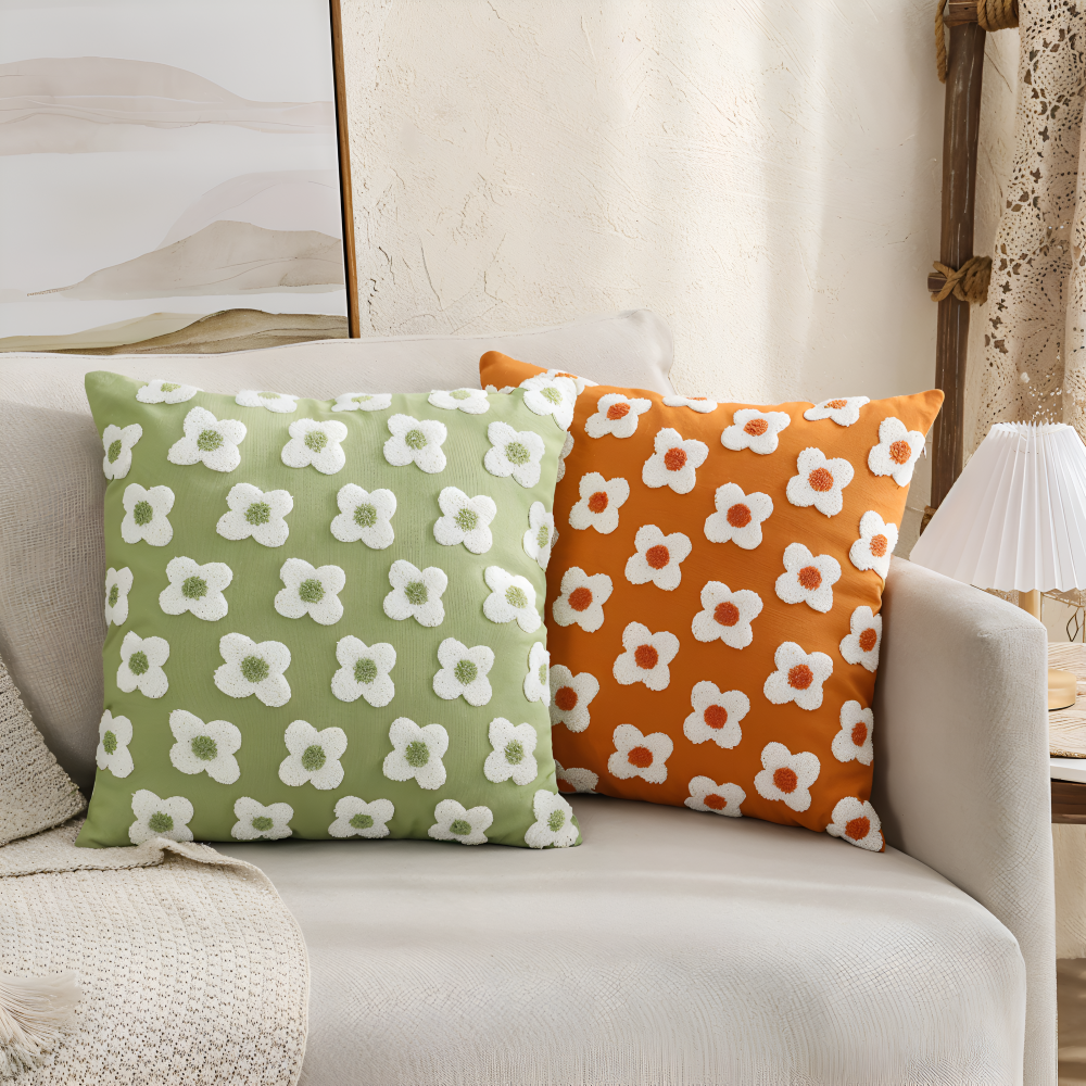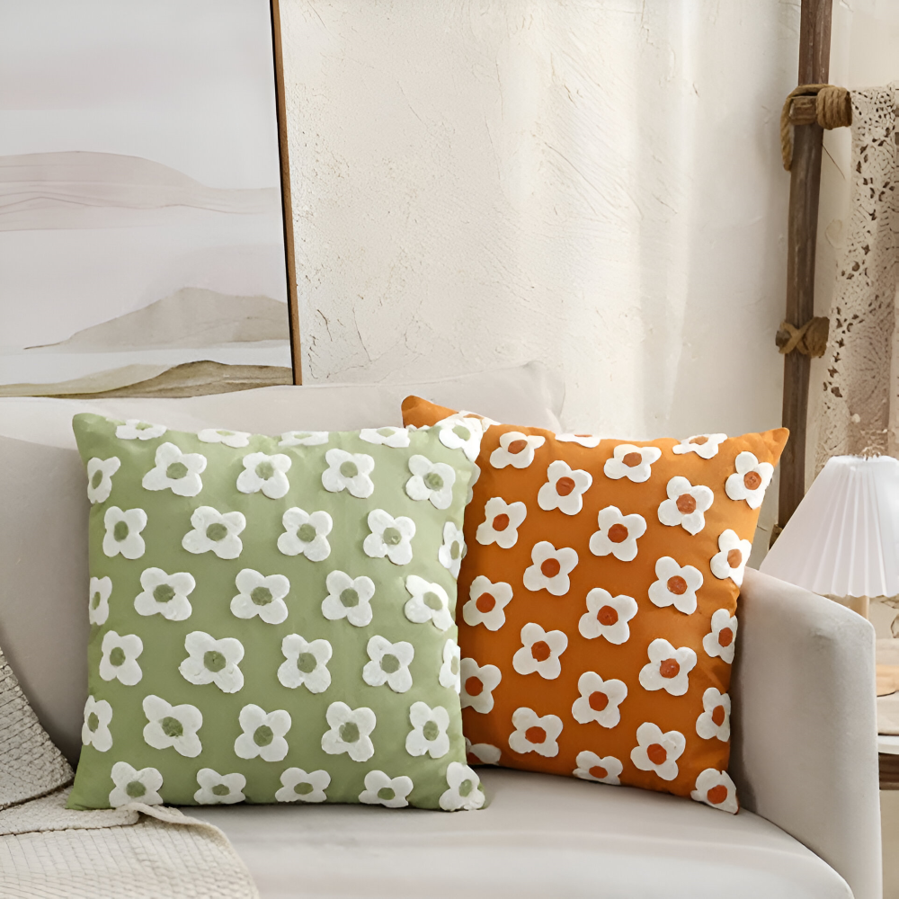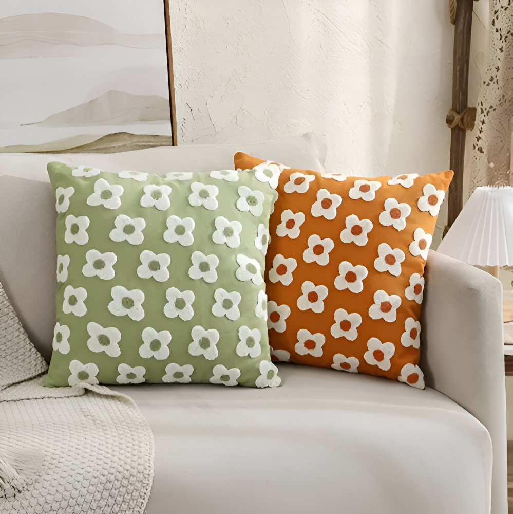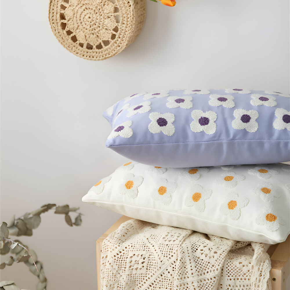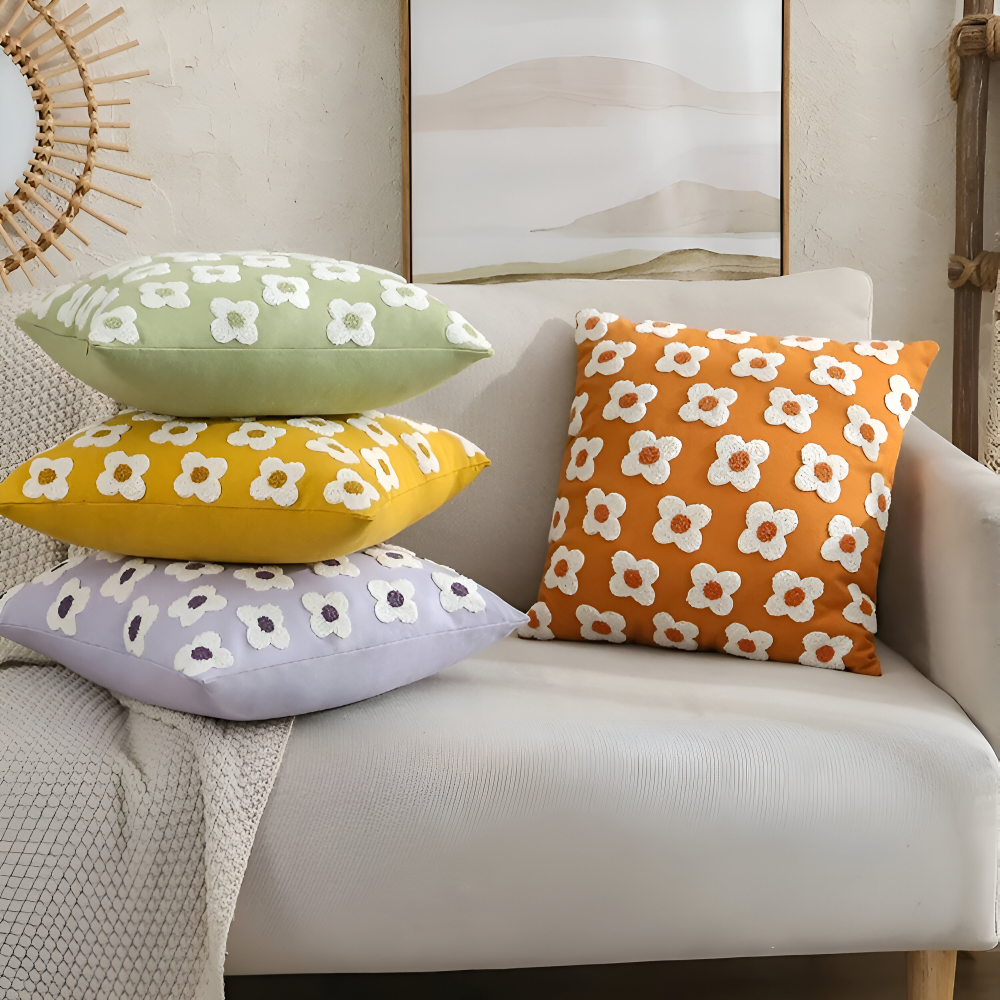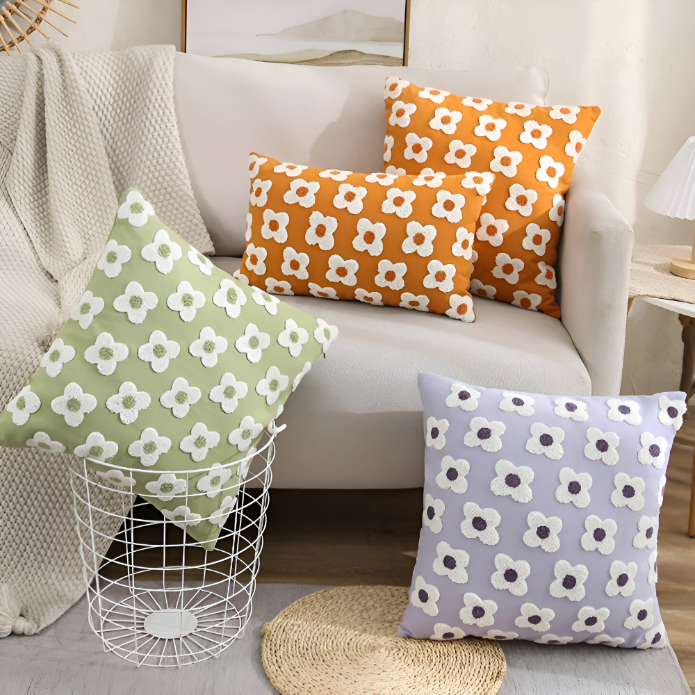 Frendorf | Blooma Sofakissen - Bestickte Quadratische & Rechteckige Blumenkissenhüllen