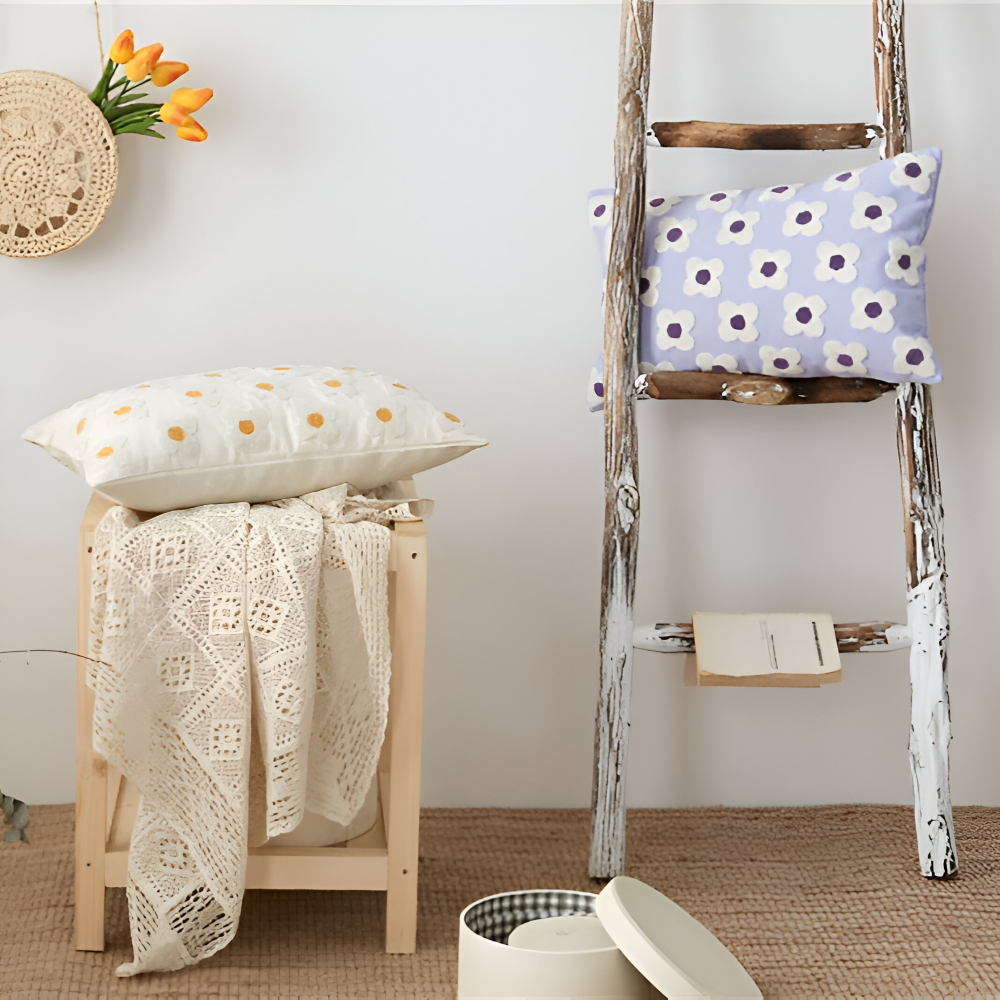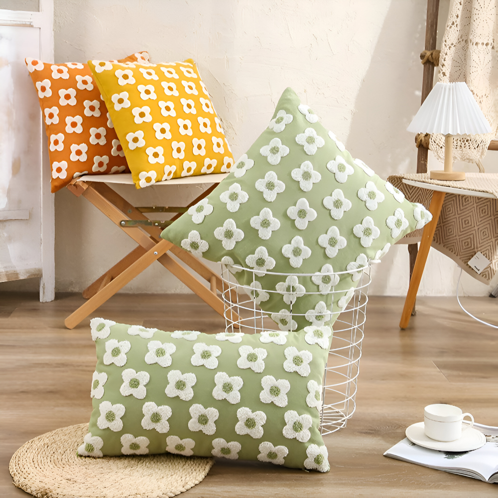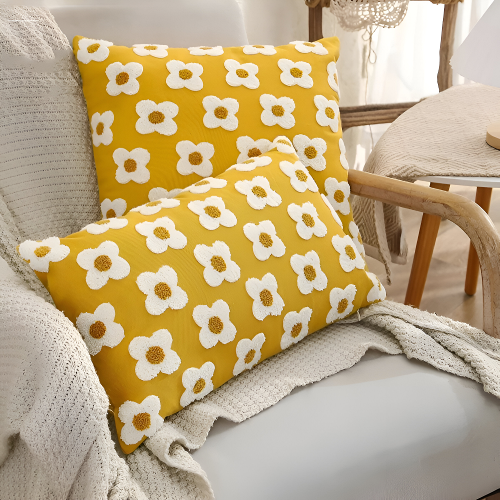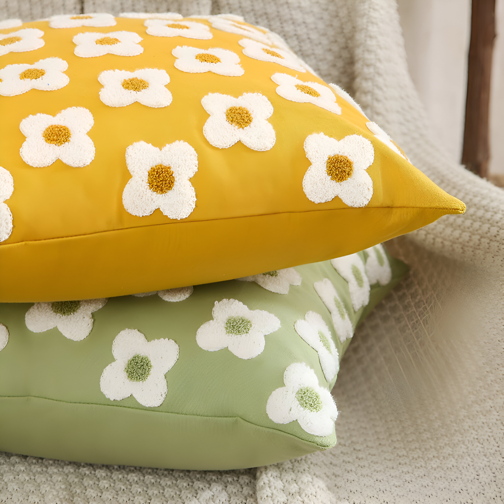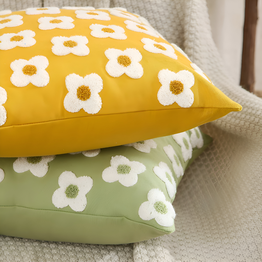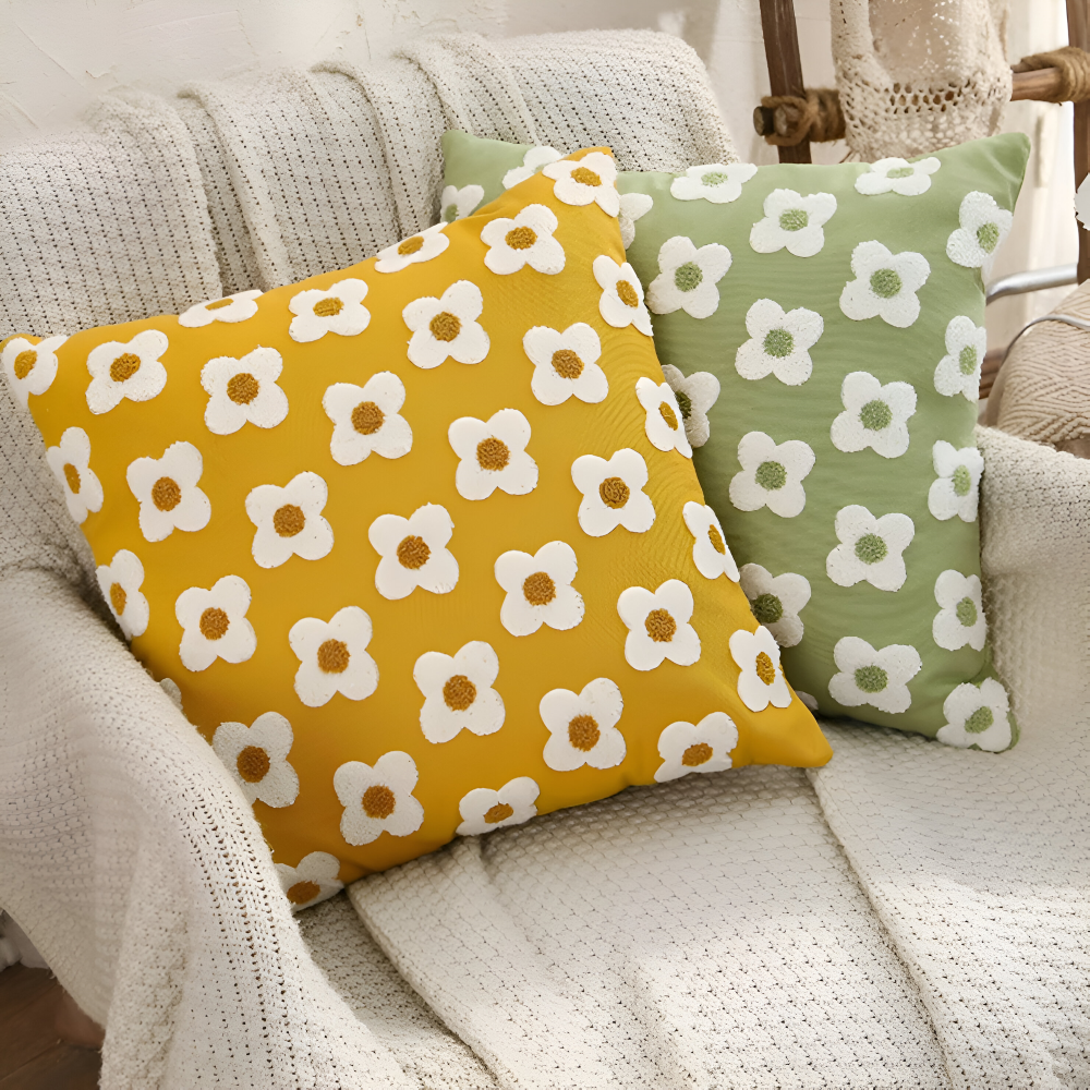 Frendorf | Blooma Sofakissen - Bestickte Quadratische & Rechteckige Blumenkissenhüllen