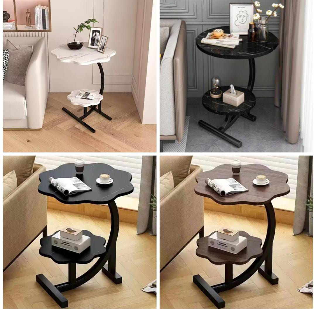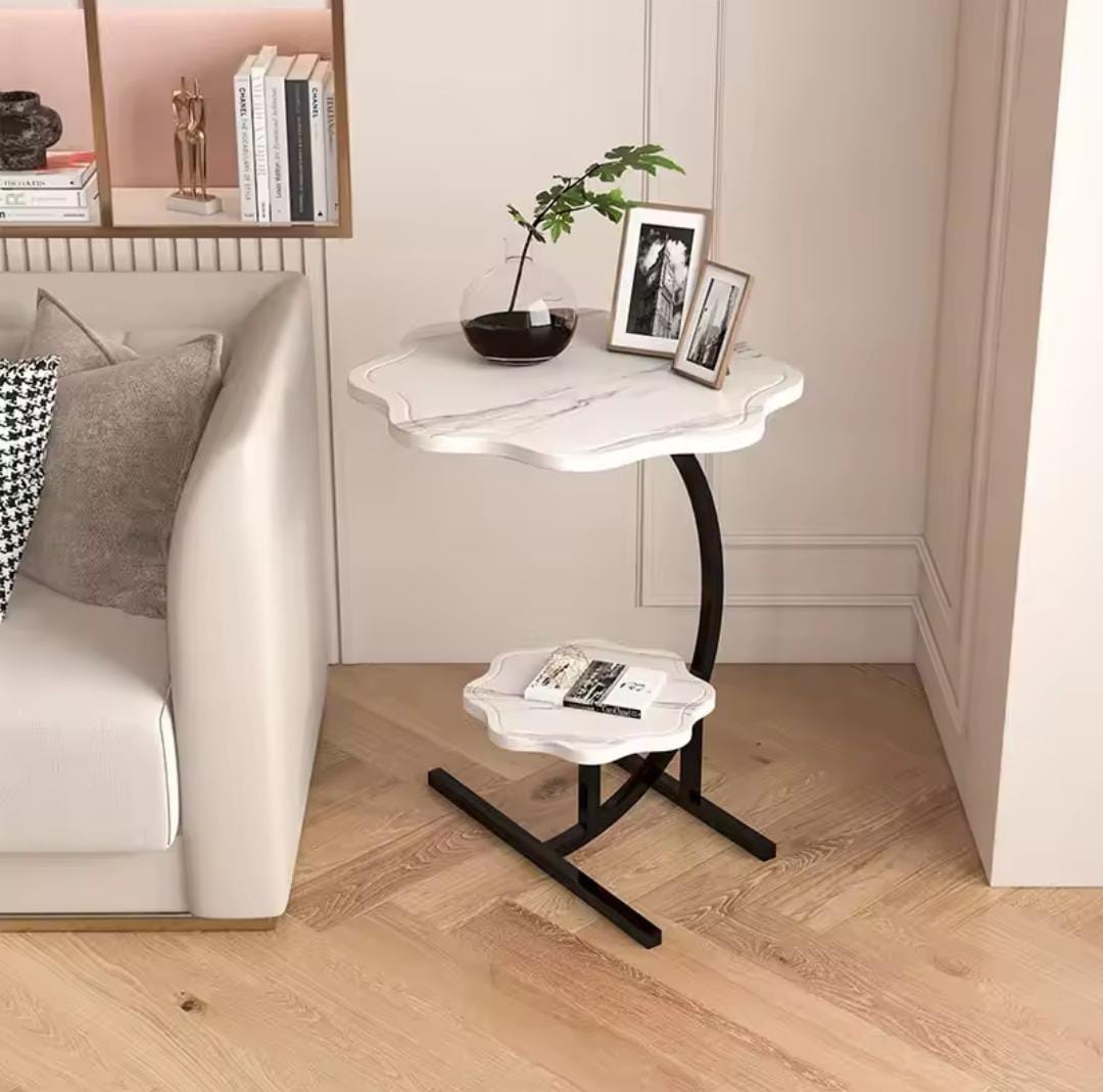 2-schichtiger Blütenform Marmor-Muster Textur Kleiner C-förmiger Beistelltisch, Snack-Beistelltisch, Endtisch für Sofatisch, Nachttisch für Wohnzimmer, Küche, Garten, Schlafzimmer