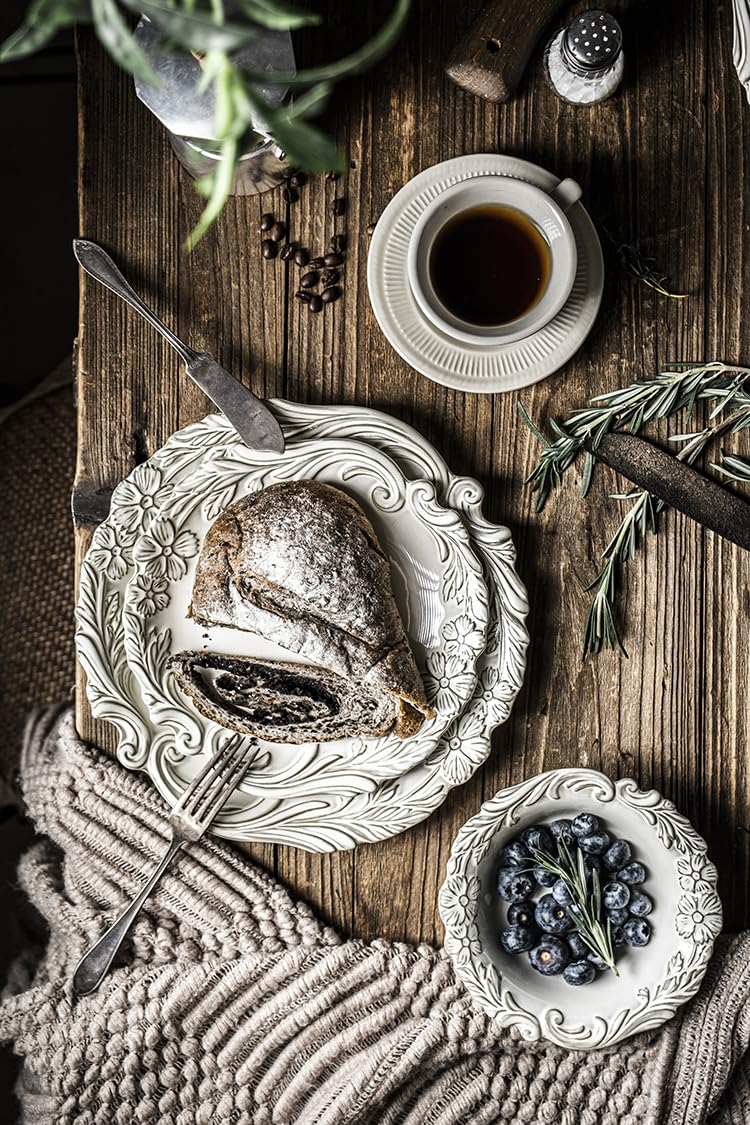 Frendorf | Blumenkeramikteller, 26,5 cm, eleganter vintage-inspirierter Essteller, langlebig und hitzebeständig, perfekt zum Servieren von Hauptgerichten, Salaten und Desserts, ideal für Zuhause, Restaurants und Veranstaltungen