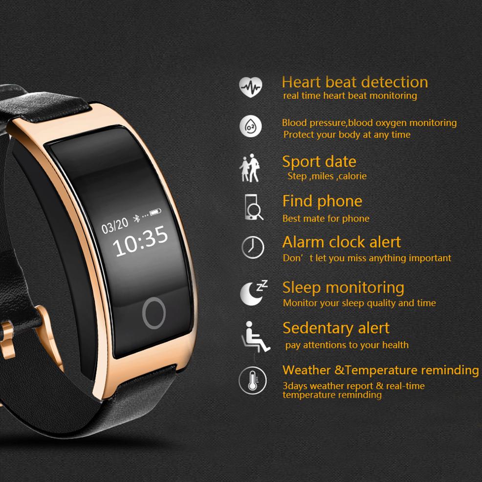 Unser Blutdruckmonitor misst aktiv und präzise Ihren Blutdruck zu jeder Zeit mit einem integrierten optischen Sensor, der auch Herzfrequenz und Puls erfasst. Diese tragbare Blutdruckuhr besteht aus strapazierfähigen Materialien und präsentiert sich in einem eleganten Farbton, der dem modernen Trend entspricht. Mit der Benachrichtigungsfunktion für eingehende Anrufe verpassen Sie Ihr Telefon nie wieder (das Armband vibriert, sodass Sie es schnell lokalisieren können), und Sie sind in der Lage, Ihre tägliche Gesundheit fortlaufend zu verfolgen, einschließlich Kalorien, Schritte, Schlafdaten und mehr.