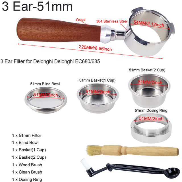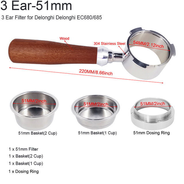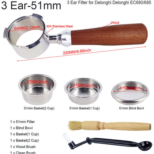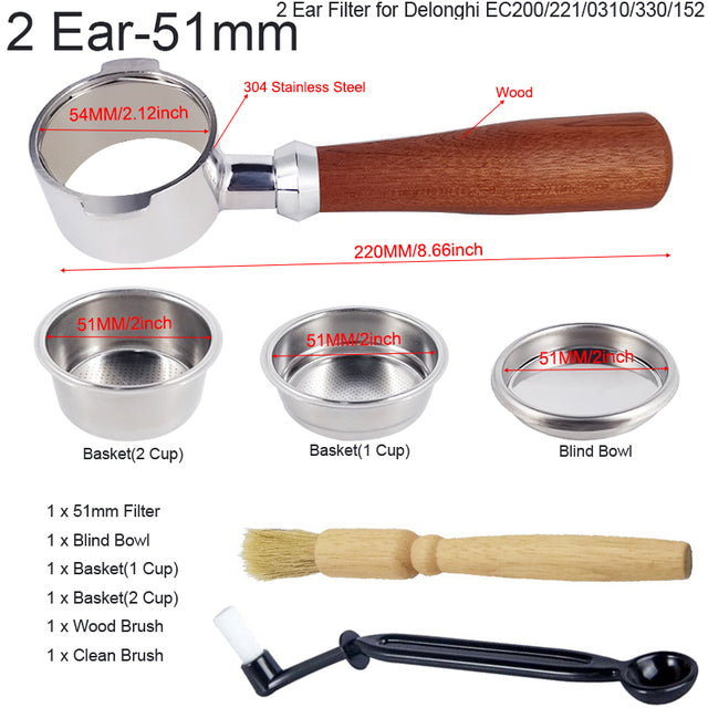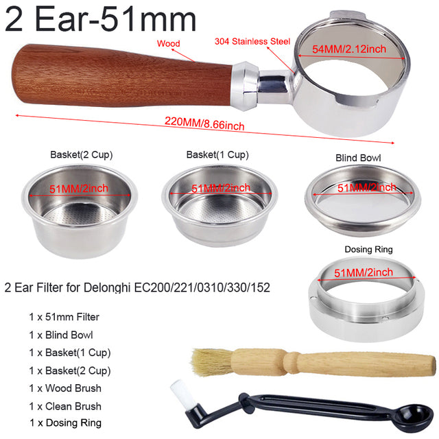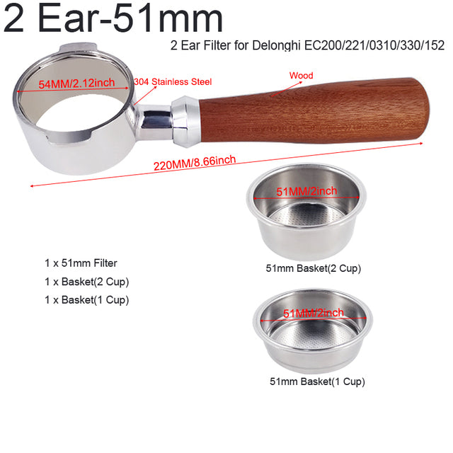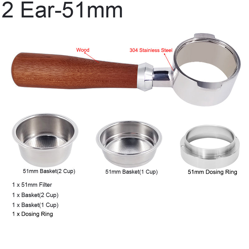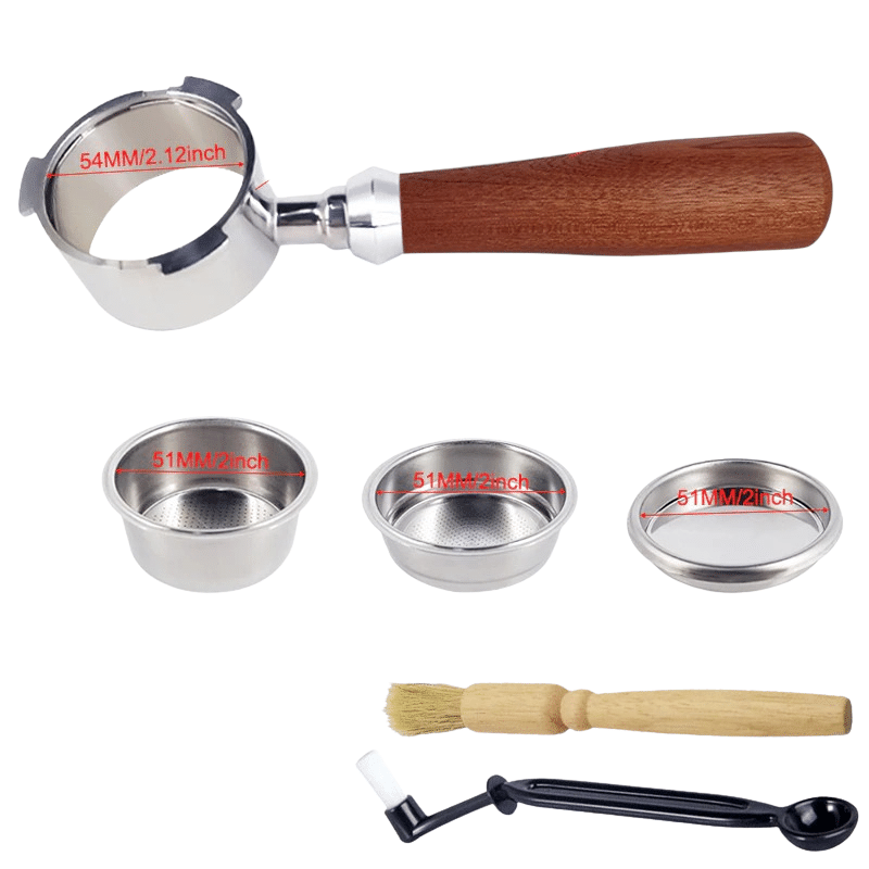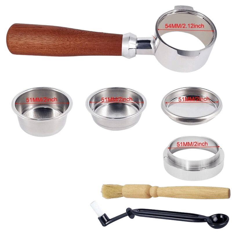 1*Bodenlose Portafilter-Espressomaschine mit Holz- oder Kunststoffgriff