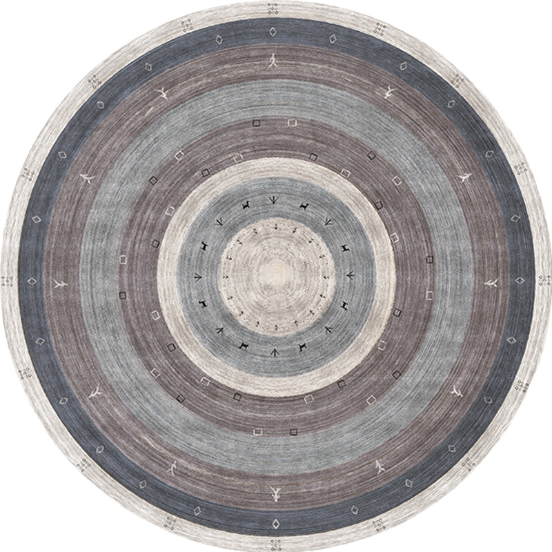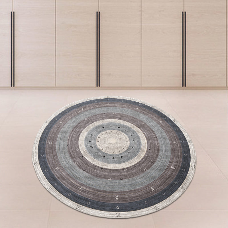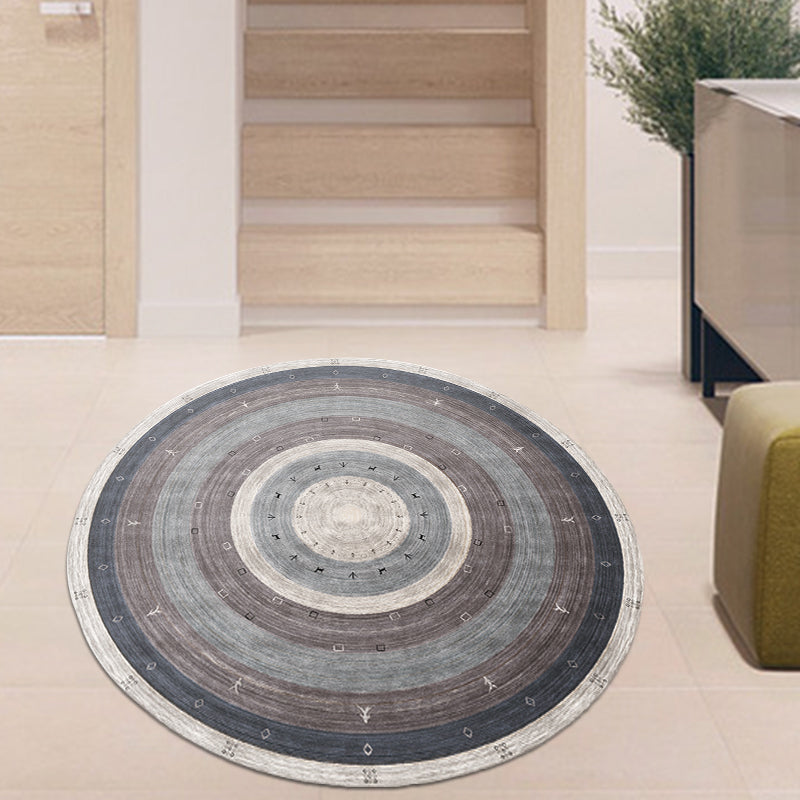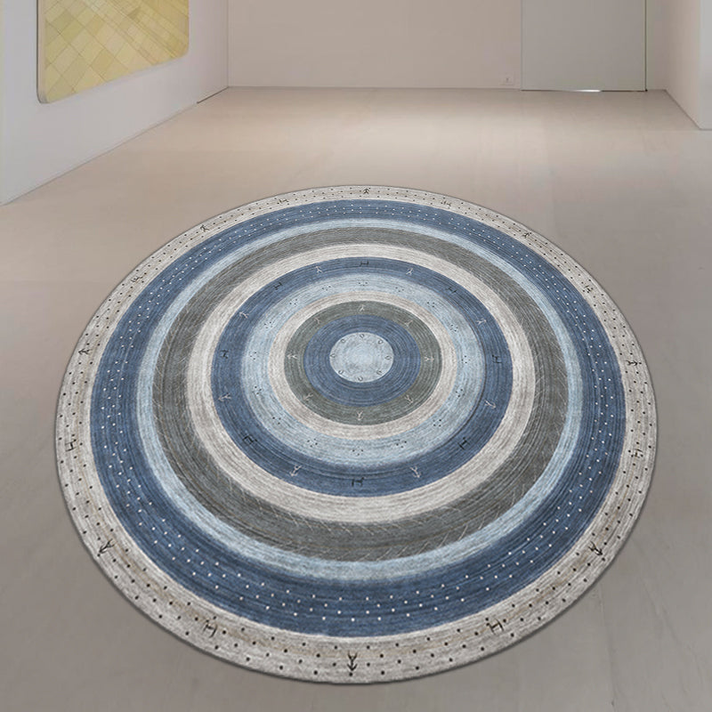 Frendorf | Bohemian Konzentrische Kreis Bereich Teppich Grau und Blau Synthetischer Teppich rutschfeste Rückseite Teppich für Wohnzimmer