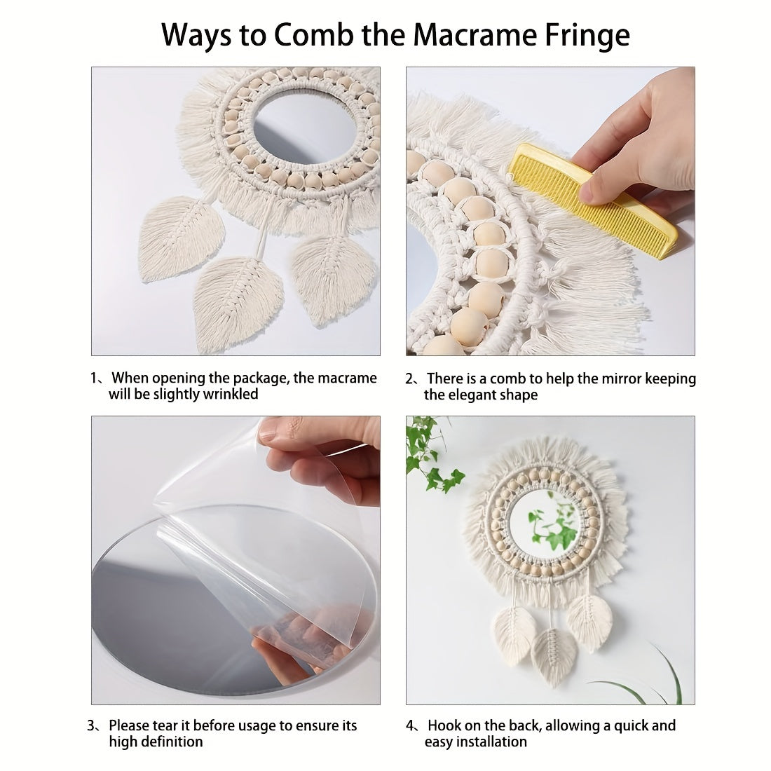 Dieser Boho-Wandspiegel mit Makramé-Fransen und dekorativen Perlen ist eine wunderschöne Bereicherung für Ihr Interieur. Die weiche Baumwolle und die verspielten Fransen vermitteln ein warmes, natürliches Gefühl in Ihrem Raum, während der runde Spiegel ein praktisches Element hinzufügt. Perfekt für das Schlafzimmer, das Wohnzimmer oder den Flur bringt dieser Spiegel böhmischen Charme in jeden Raum.