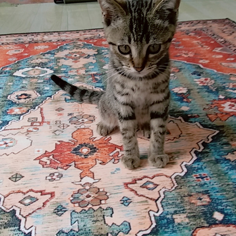 Frendorf | Boho Wohnzimmerteppich Multi-farbiges Karomuster Gedruckter Indoor Teppich Synthetisch Rutschfeste Unterlage Haustierfreundlicher Teppich