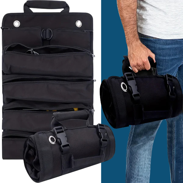 Halte dein Werkzeug übersichtlich und griffbereit mit dieser tragbaren Rolltasche für jede Aufgabe.
