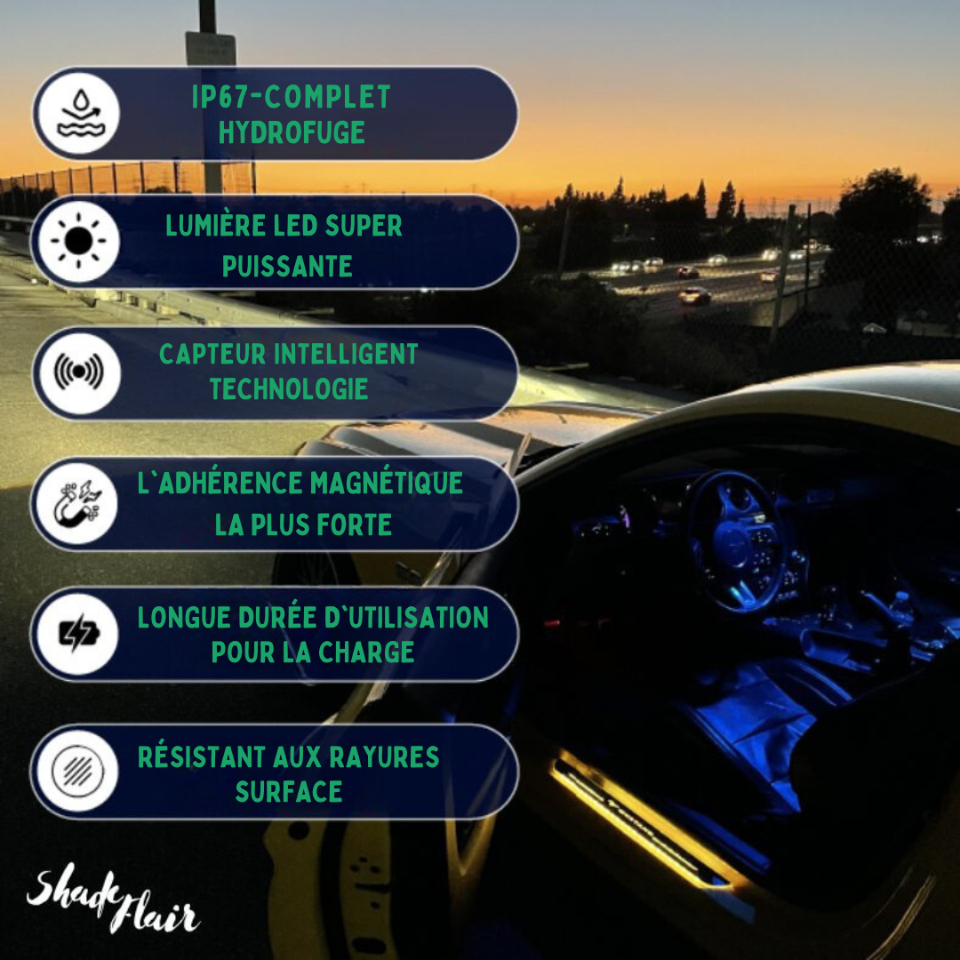 Das LED-Lichtpaddel wird mit einem geliefertMagnetisches DesignDas hilft bei der einfachen Installation und wird auch mit einem geliefertSmartSensorDadurch werden die Schweller bei geöffneter Tür beleuchtet und bei geschlossener Tür ausgeschaltet.