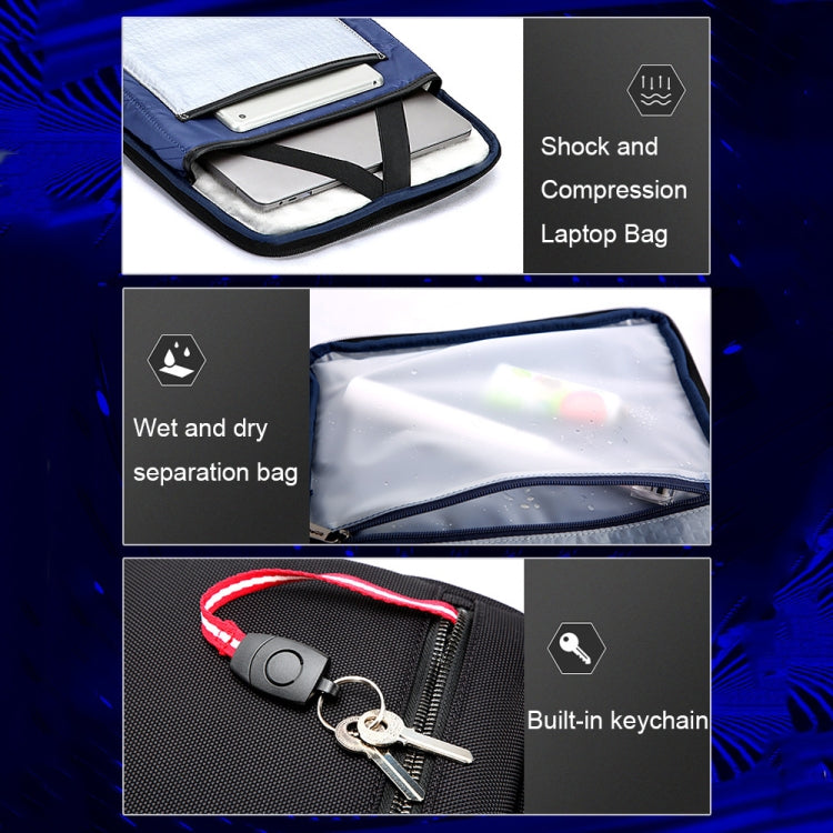 8. Der Rucksack ist mit einem USB-Ladeanschluss ausgestattet, was die Nutzung erleichtert