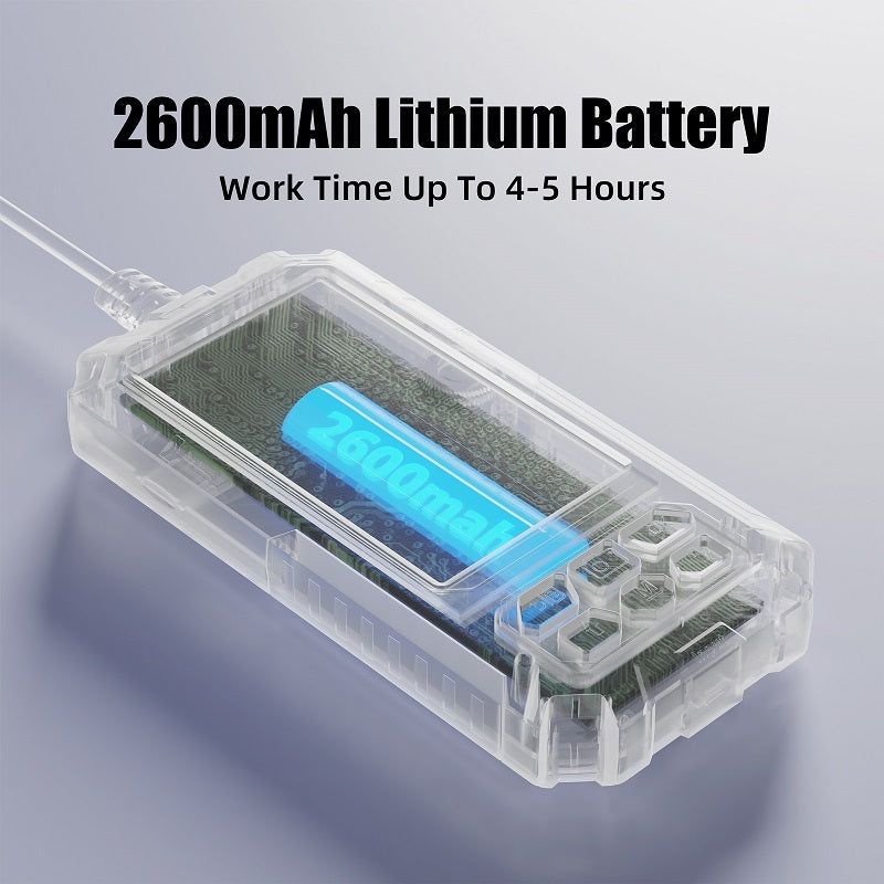 • 2600mAh Lithium-Akku bietet 3–5 Stunden Laufzeit