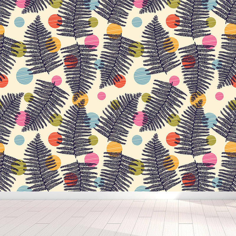 Frendorf | Botanischer Blattdruck Tapete Wandmalerei Zeitgenössische Vlies Wandkunst in dunkler Farbe
