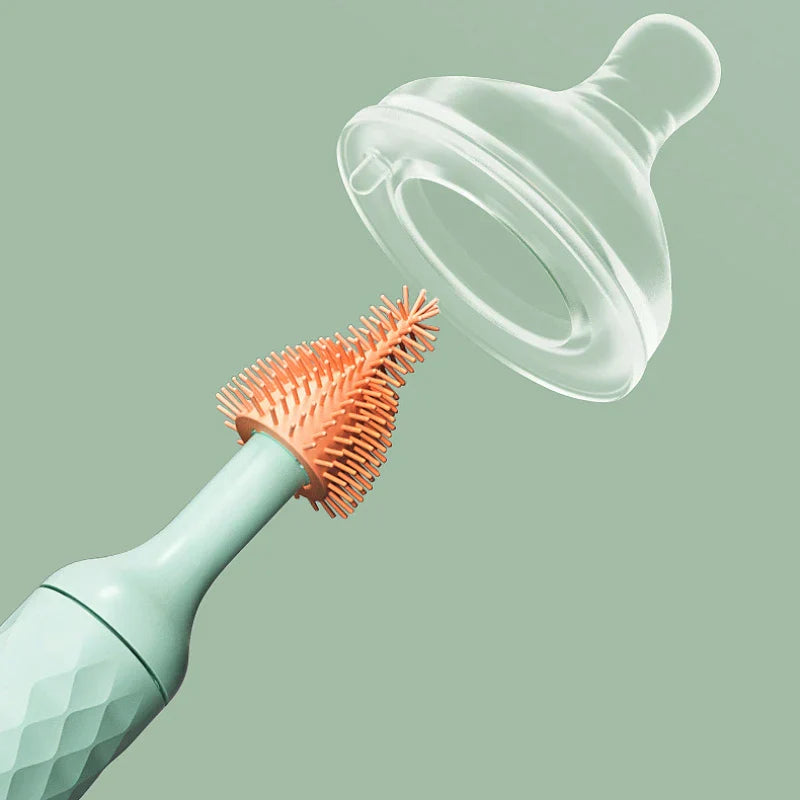 Schluss mit Schrubben und Einweichen! BottleSpark verfügt über eine starke, aber sanfte Silikonbürste, die mühelos hartnäckige Reste, Milchflecken und schädliche Bakterien aus den Flaschen deines Babys entfernt. Der 360° rotierende Bürstenkopf erreicht jede Ecke und Ritze und sorgt für eine gründliche Reinigung, die mit bloßen Händen nicht möglich ist.