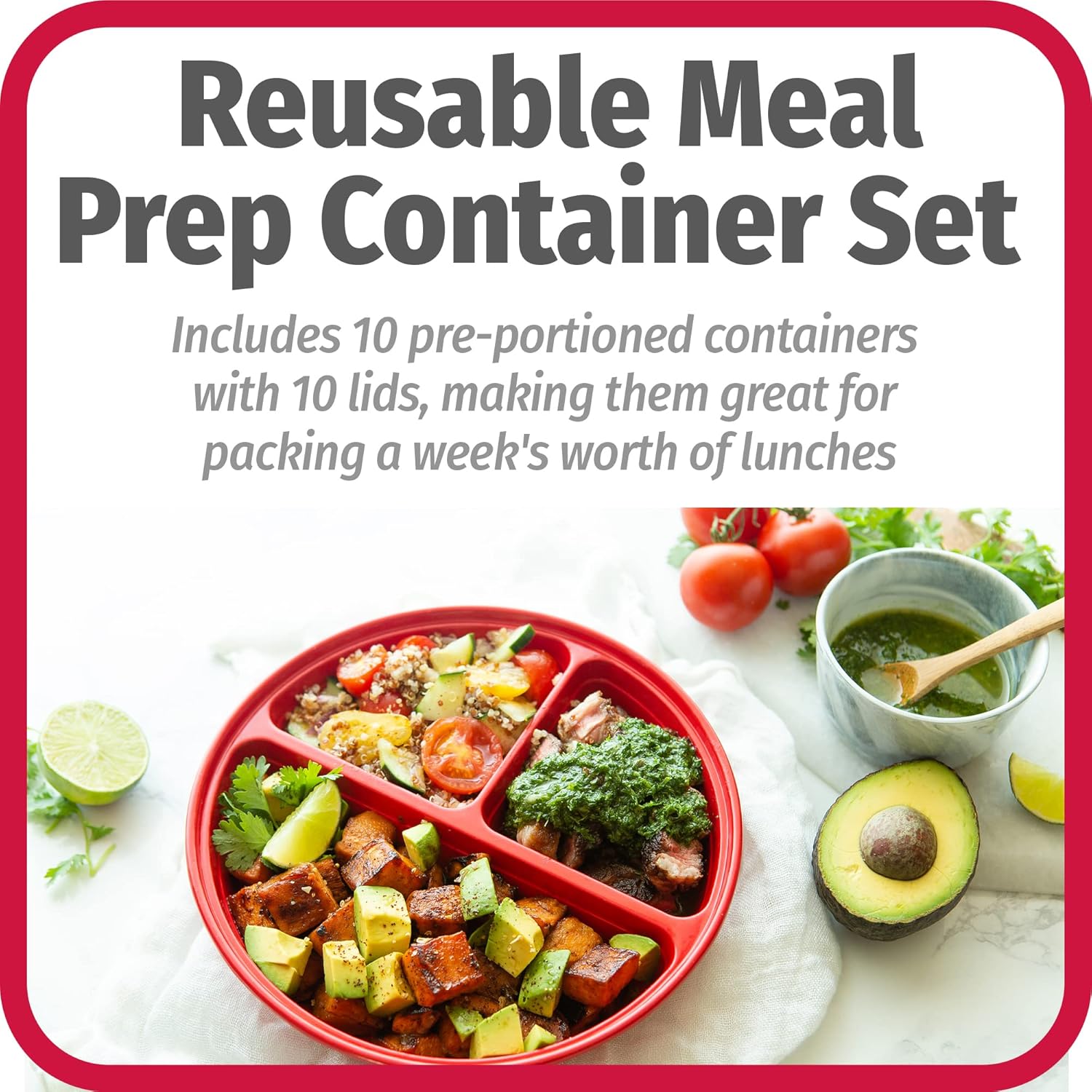 • 10-teiliges Set: Enthält 10 Behälter, jeder mit 3 Fächern, perfekt für ausgewogene Ernährung und Portionskontrolle.