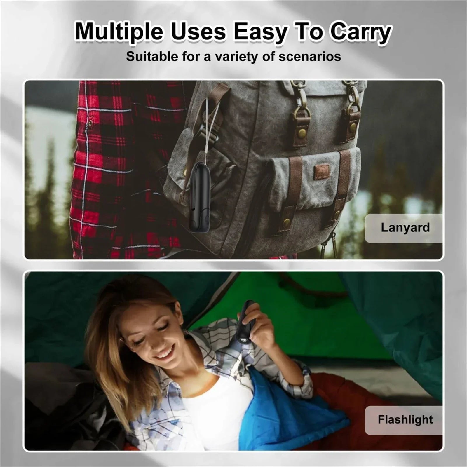 📌 3 Funktionen in 1 Gerät: Handventilator, Powerbank & LED-Taschenlampe – perfekt geeignet für Reisen, das Büro, Camping oder Festivals.