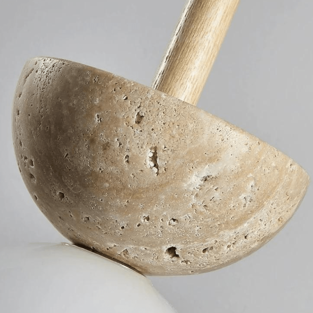 Verschönern Sie Ihr Schlafzimmer mit einem Hauch von Eleganz und modernem Stil durch diese ansprechende Travertin-Pendelleuchte. Ideal für all jene, die eine zeitgemäße und dennoch zeitlose Beleuchtungslösung wünschen.