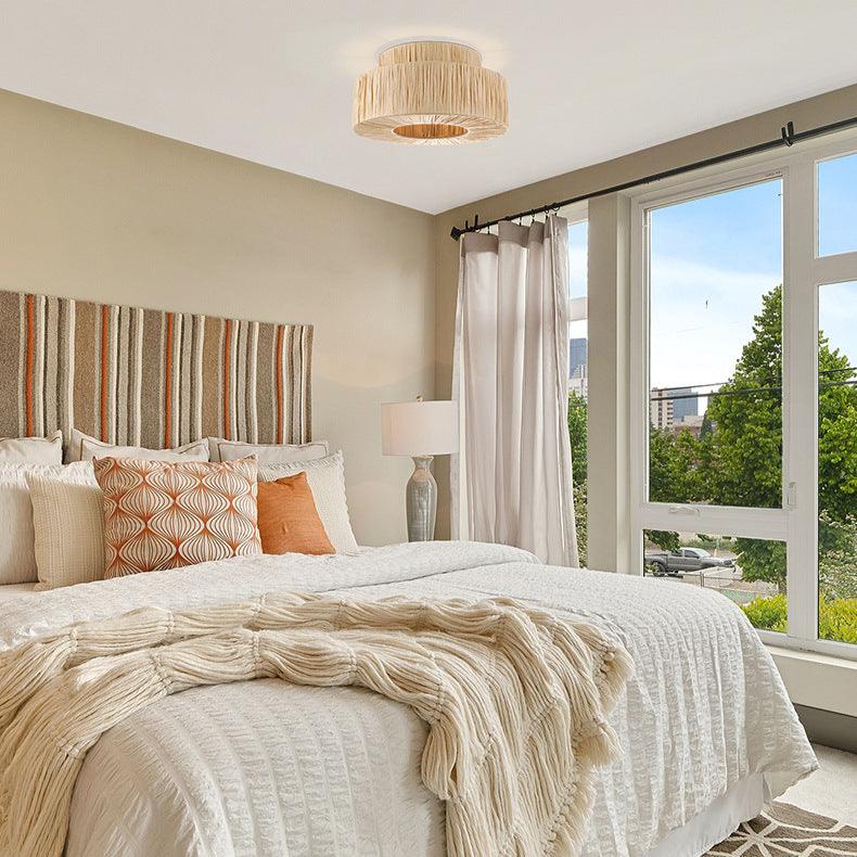 Verleihen Sie Ihrem Raum die zeitlose Anmut dieser modernen Boho-gewebten Deckenleuchte – ideal für jedes zeitgenössische oder retro-inspirierte Interieur.