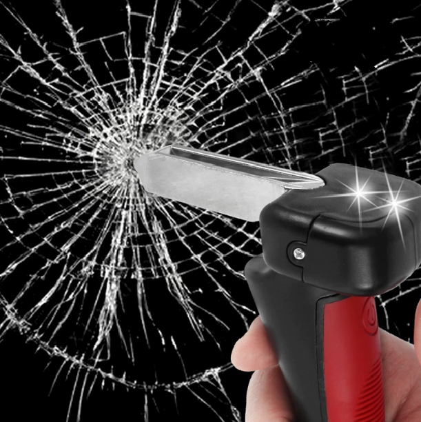 ✔️ 5-in-1 multifunktionales Werkzeug: Fensterzertrümmerer, Gurtschneider, LED-Taschenlampe