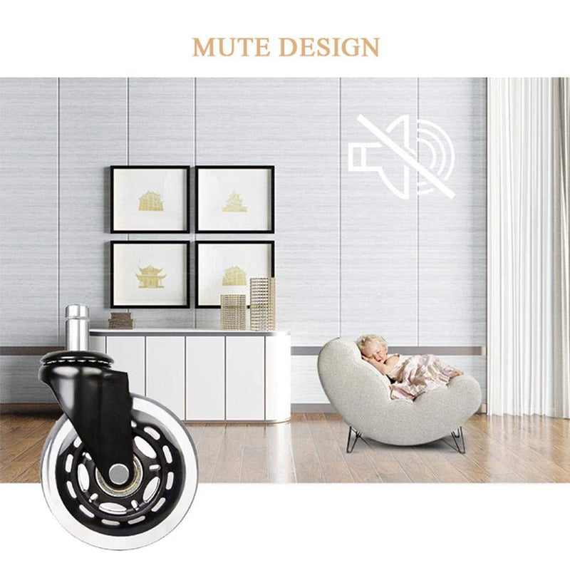 Robust: Der Gummiüberzug und die Stahllagerstellen sicher, dass der Druck gleichmäßig verteilt wird, UND sind so konzipiert, dass sie keine Kratzer auf Ihrem Boden hinterlassen! Diese Rollen werdenlänger halten als die meisten Standard-Bürostuhlrollen.