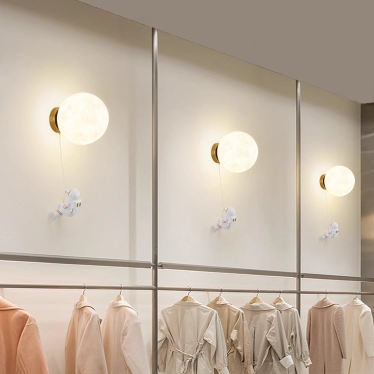 Verleihen Sie Ihrem Zuhause eine stimmungsvolle & umweltfreundliche Beleuchtung mit der Creative Moon Astronaut Wandleuchte. Der 3D-gedruckte Mondlampenschirm sorgt für sanftes Licht und eine geschmackvolle Atmosphäre.