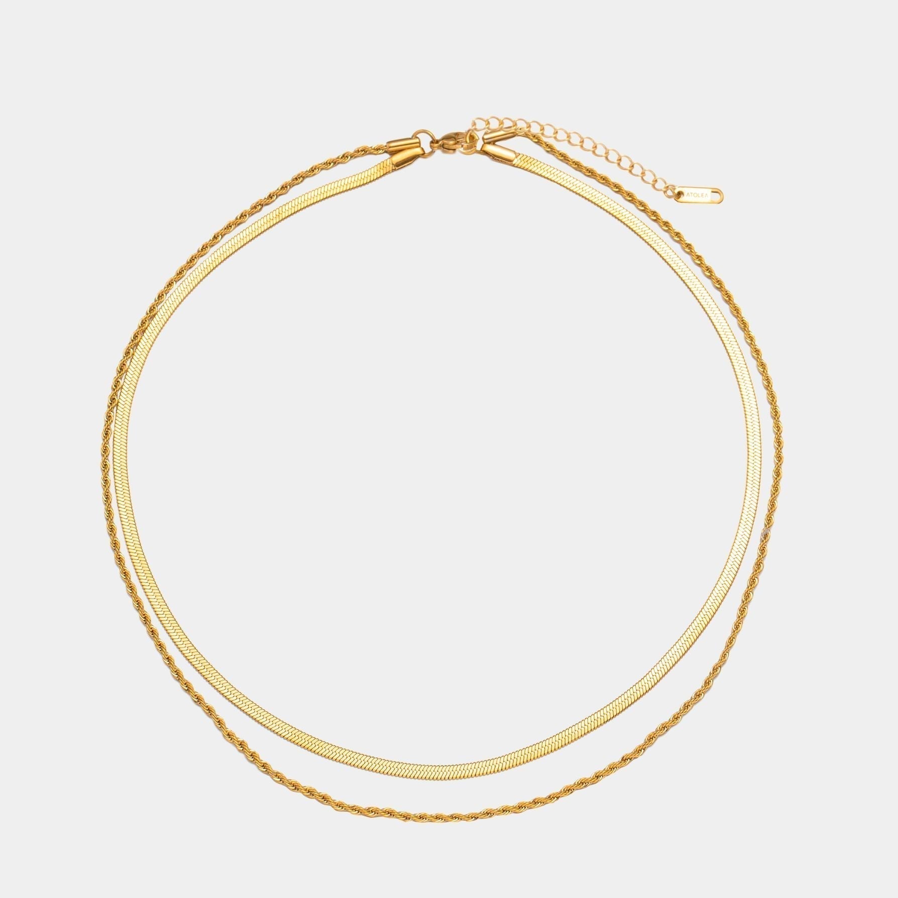 Verleihen Sie jedem Outfit mit dieser stilvollen mehrschichtigen Halskette einen funkelnden Akzent, die eine elegante goldene Fischgrät-Choker mit einer feinen Seilketten kombiniert.