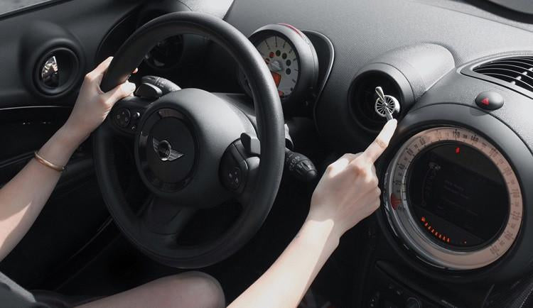 Die Flügel des Ventilators drehen sich, während die Klimaanlage im Fahrzeug läuft und verströmen angenehme Düfte.
