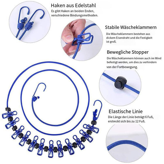 2x Tragbarer EasyDry Reisewäschetrockner mit 12 Clips