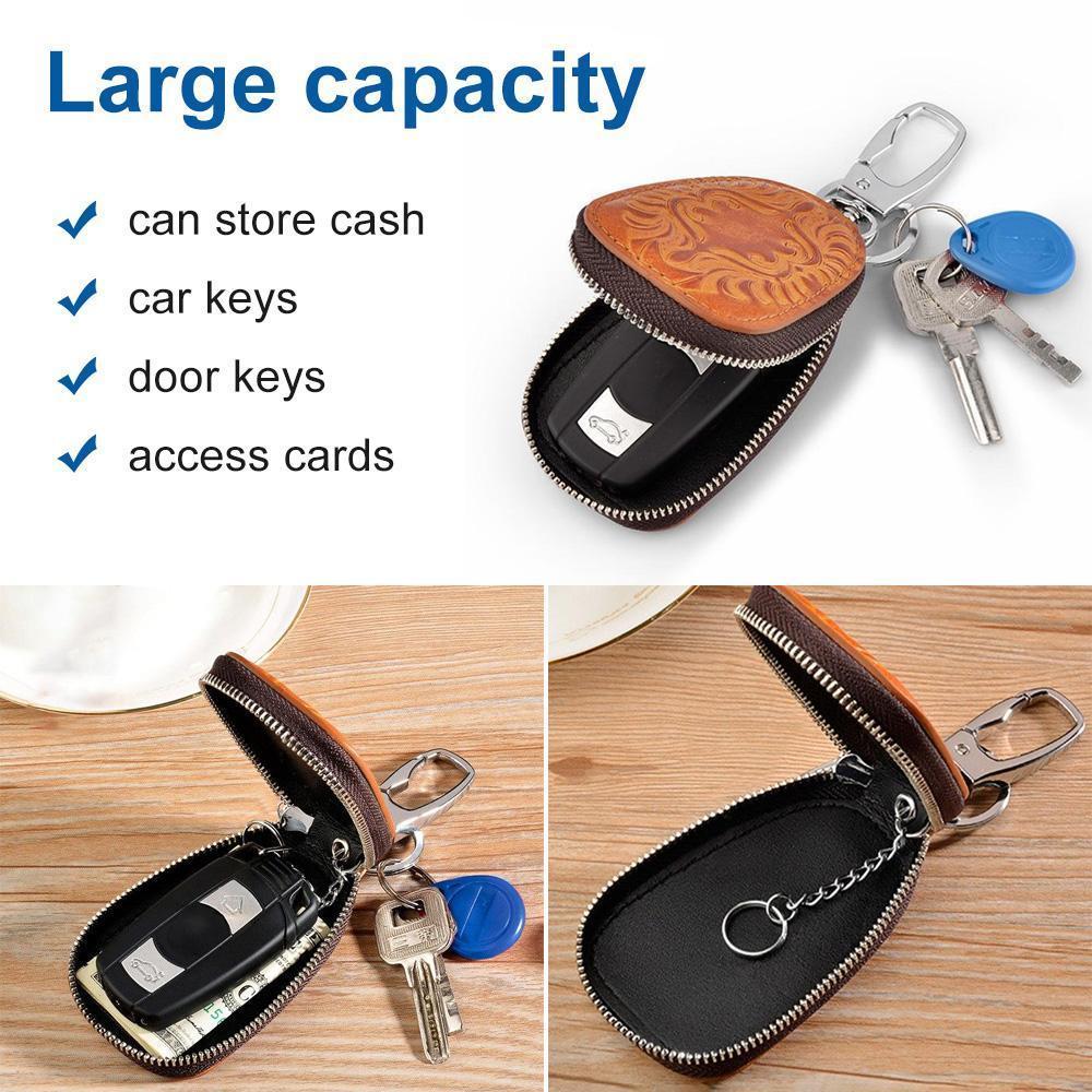Material- Gefertigt aus äußerst weichem und strapazierfähigem hochwertigem Leder mit eleganter Optik, schützt Ihren Autoschlüssel vor Beschädigungen, Staub und Kratzern